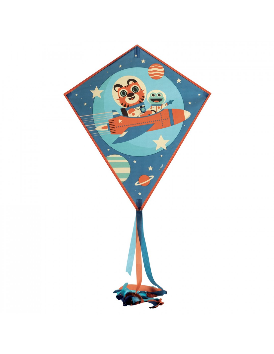 Al costat de Djeco et presentem aquest genial estel, en aquest cas en el seu model Rocket. Mira quin disseny tan divertit, amb el tigre i la granota volant en un coet per l'espai exterior! Fes volar aquesta estel i mira com decora el cel, és espectacular!