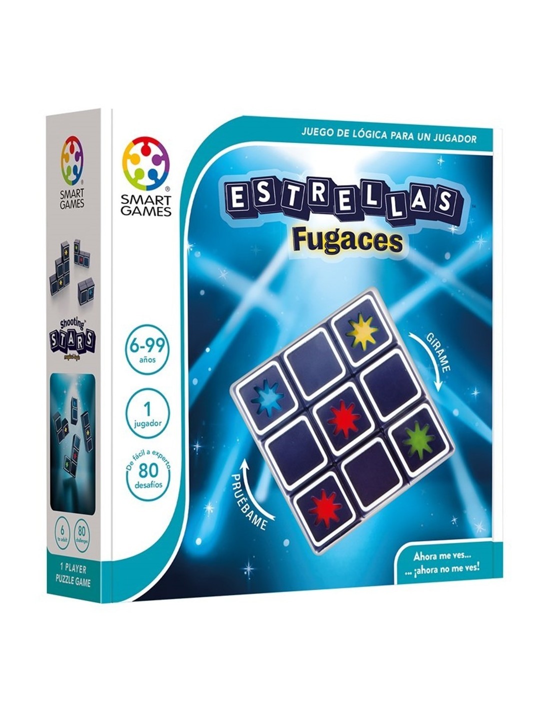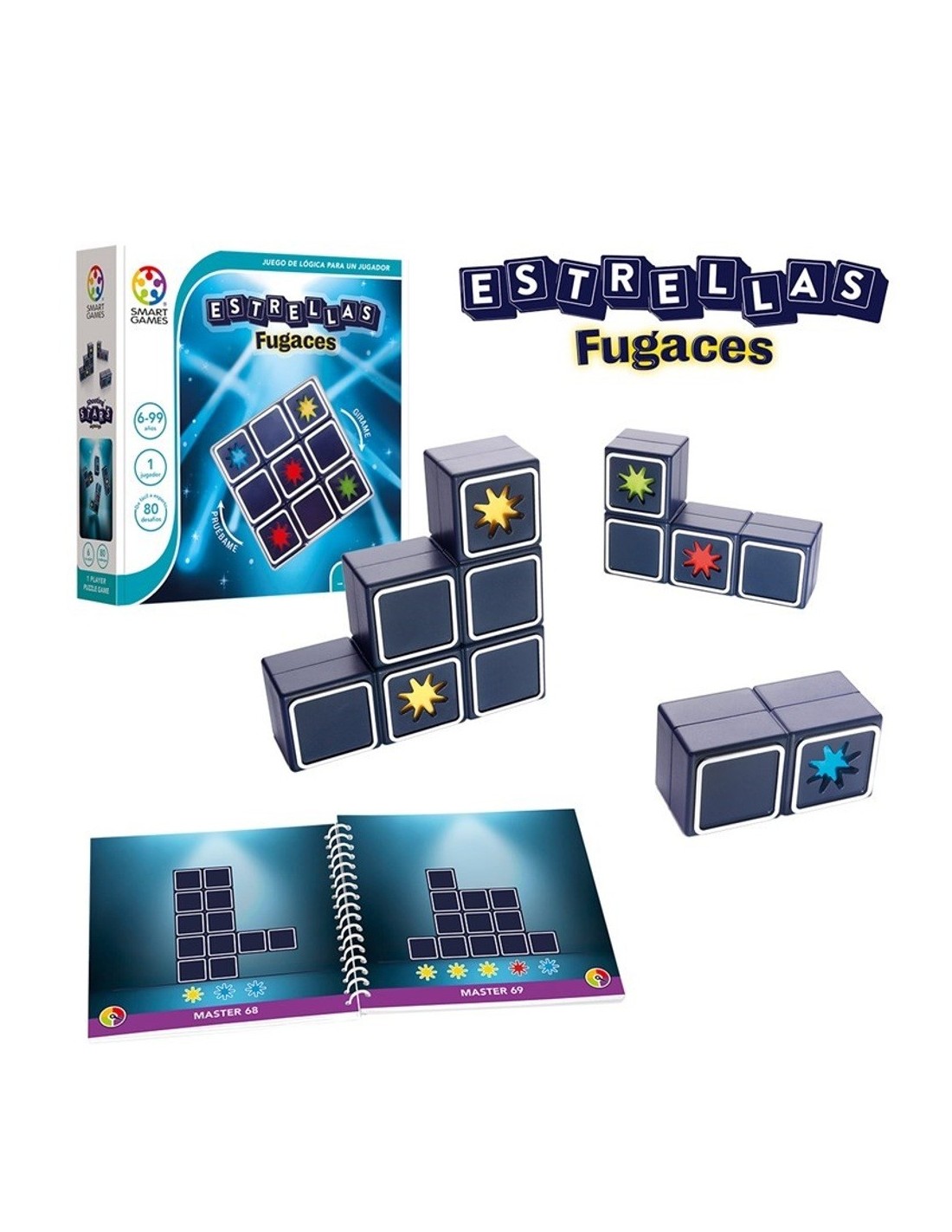 Estrelles fugaces de Lúdilo conté dins de la seva caixa 4 peces amb estrelles i un quadernet amb els 80 reptes i les seves corresponents solucions.