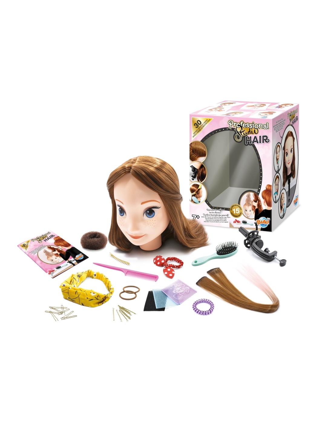 Estudi Professional de Perruqueria Buki és la joguina ideal per als qui somien amb convertir-se en grans estilistes. Aquest complet cap de pentinat permet practicar tota classe de tècniques amb total comoditat gràcies als seus cabells llargs, suaus i d'excel·lent qualitat. No s'embulla, no es crespa i conserva el seu aspecte impecable fins i tot després de moltes sessions de joc, la qual cosa la converteix en una eina perfecta per a aprendre pentinats reals.