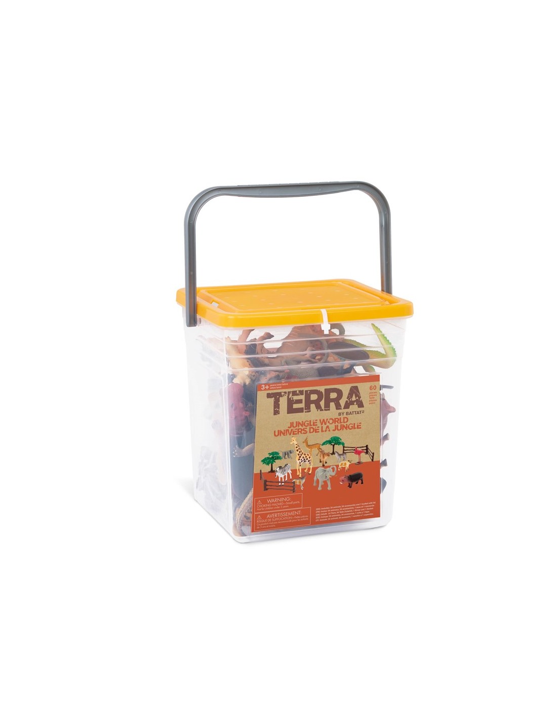 La Galleda groga Animals de la Jungla amb 60 peces de Terra és una joguina pensada per a transportar als nens directament al cor de la selva. Aquesta completa galleda reuneix una selecció d'animals salvatges i elements de l'entorn que permeten recrear escenes plenes d'aventura, imaginació i descobriment. Amb les seves 60 peces variades, els petits poden construir la seva pròpia jungla, moure als animals per diferents zones i crear històries plenes d'acció mentre exploren lliurement la fauna més fascinant del planeta.