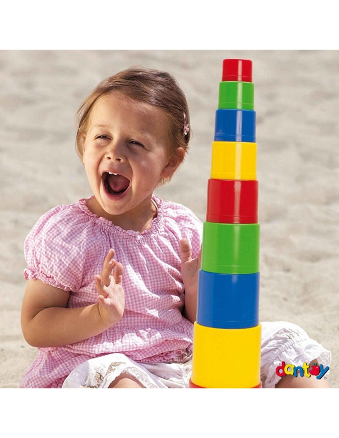 Aquesta clàssica joguina és perfecta perquè els nens aprenguin sobre grandàries, colors i les diferents formes geomètriques, alhora que milloren la seva coordinació motriu fina apilant i organitzant els cubs. Els dibuixos i formes que decoren les galledes també afegeixen un component visual que fomenta el reconeixement de patrons i colors, un pas clau en el desenvolupament cognitiu.