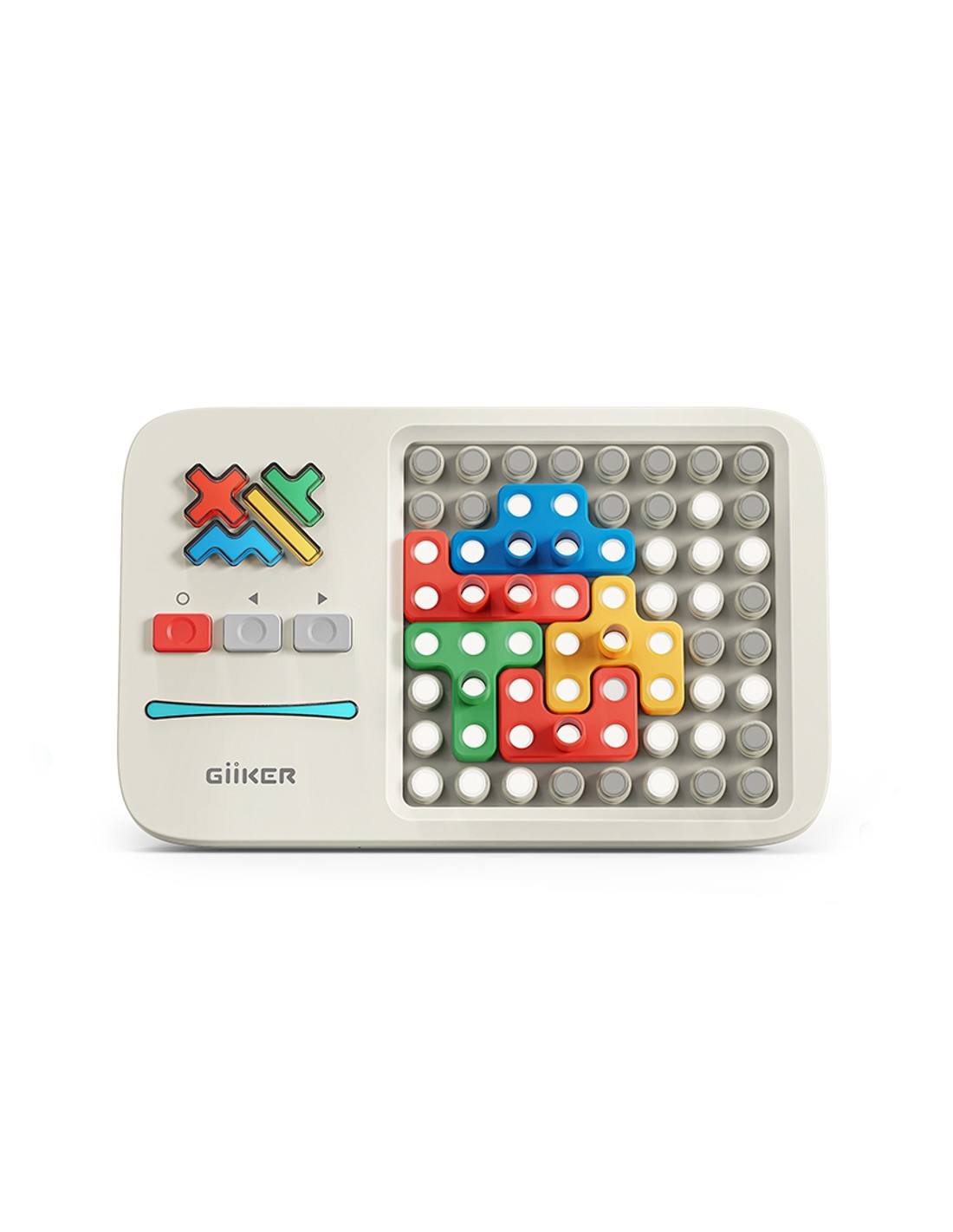 GiiKER Super Blocks és una innovadora consola de jocs interactiva dissenyada per a estimular l'aprenentatge a través del joc. El seu enfocament en la resolució de trencaclosques ho converteix en una eina educativa ideal per a nens i adults, fomentant el desenvolupament d'habilitats cognitives mentre gaudeixen d'hores d'entreteniment. L'objectiu del joc és omplir l'àrea de llums amb les formes i colors indicats en els desafiaments, utilitzant 16 varietats de blocs que permeten crear múltiples combinacions.