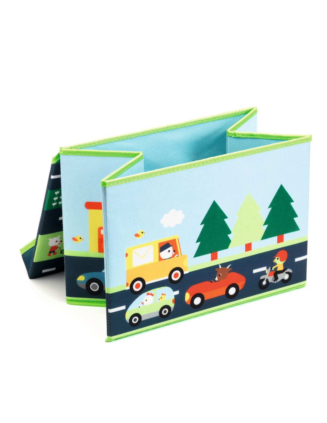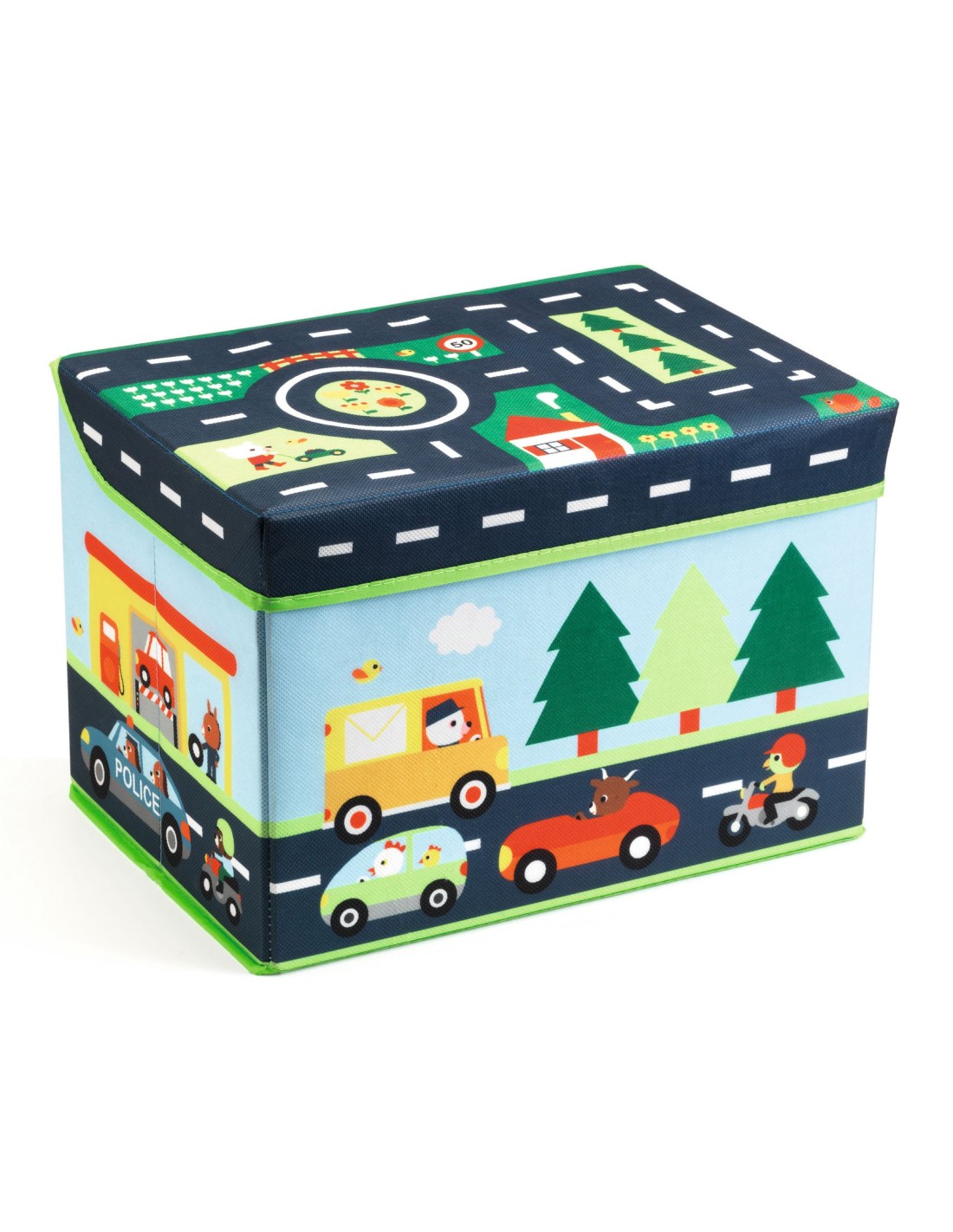 La Caixa de Joguines Circuit de Djeco és un accessori d'emmagatzematge que va molt més enllà d'una simple caixa per a guardar objectes. Aquest cofre ha estat dissenyat amb la funcionalitat de mantenir l'espai ordenat i al mateix temps oferir una àrea de joc interactiva. Fabricada en tela no teixida i reforçada amb una estructura sòlida de MDF, aquesta caixa és ideal per als petits que adoren jugar amb cotxes, ja que la seva superfície està decorada amb carrers i altres elements d'una ciutat imaginària.
