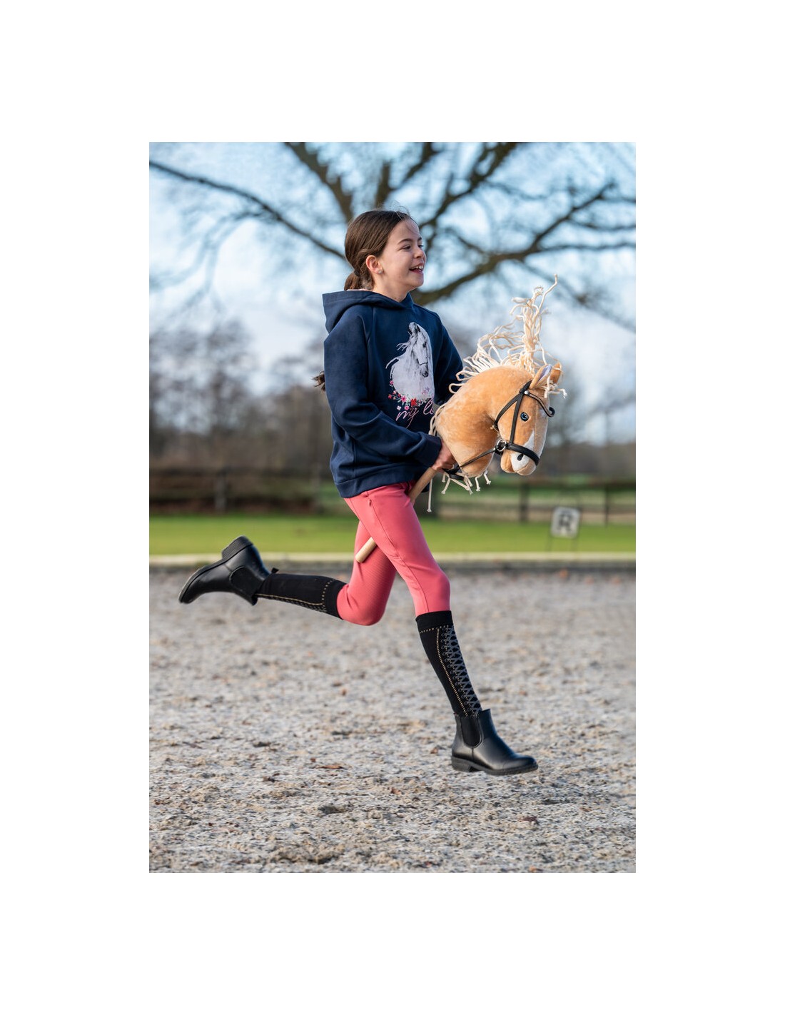 Segur i resistent, aquest cavall de pal compleix amb tots els estàndards europeus de seguretat en joguines, la qual cosa garanteix la seva durabilitat i ús de confiança. Ideal per a jocs individuals o per a petites competicions de hobby horsing, s'adapta tant a interiors com a exteriors, convertint-se en un company inseparable per als més petits.