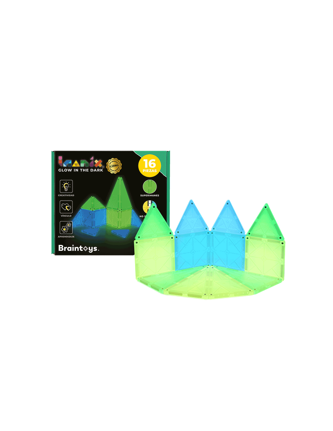 Amb Imanix Glow in the Dark, els nens poden crear tota mena de construccions en 2D i 3D, experimentant amb formes i estructures que destaquen per la seva resplendor. Aquest set no sols estimula la creativitat, sinó que també converteix cada construcció en un espectacle visual, incentivant als nens a explorar noves formes d'expressió a través del joc. La seva capacitat de brillar en la foscor afegeix una capa d'emoció que transforma el joc tradicional en una cosa màgica.