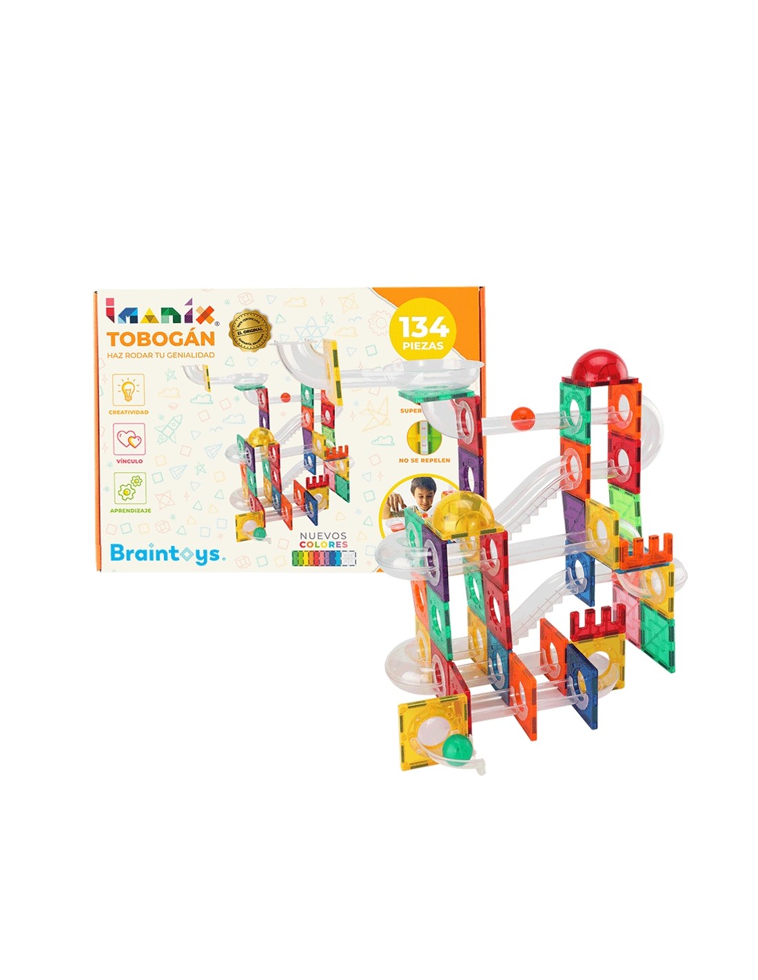 Atreveix-te a desafiar les teves habilitats de construcció i crea les teves pròpies aventures amb el Imanix Tobogan 134 peces de Braintoys! No et perdis aquesta emocionant experiència de joc que captivarà tant a nens com a adults.