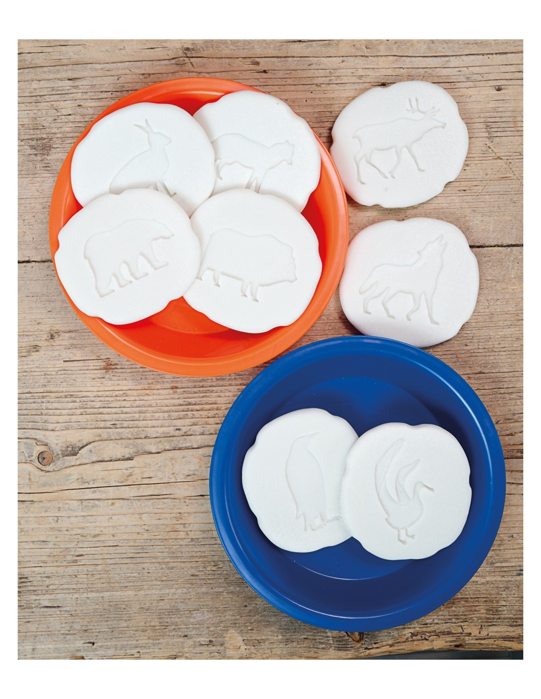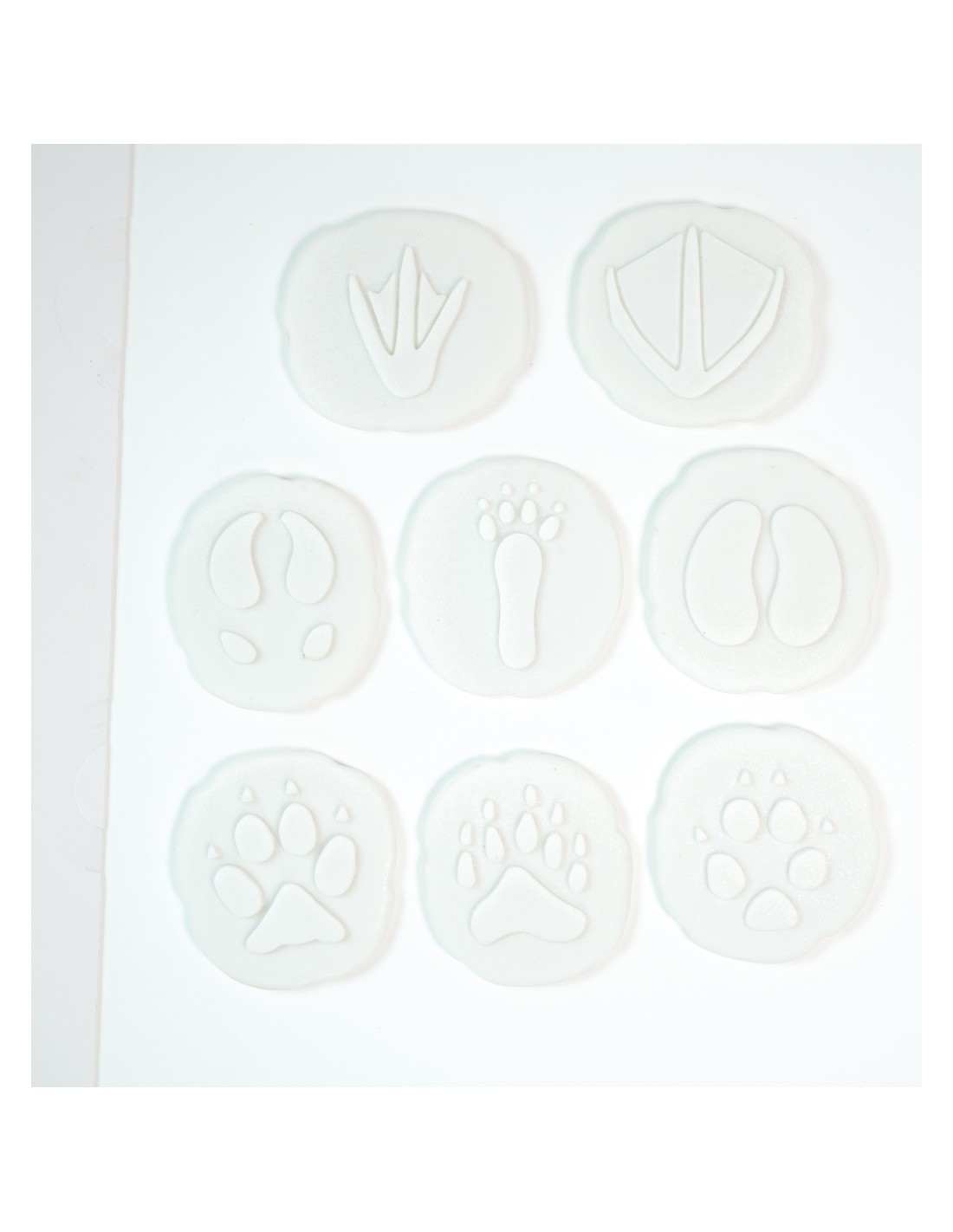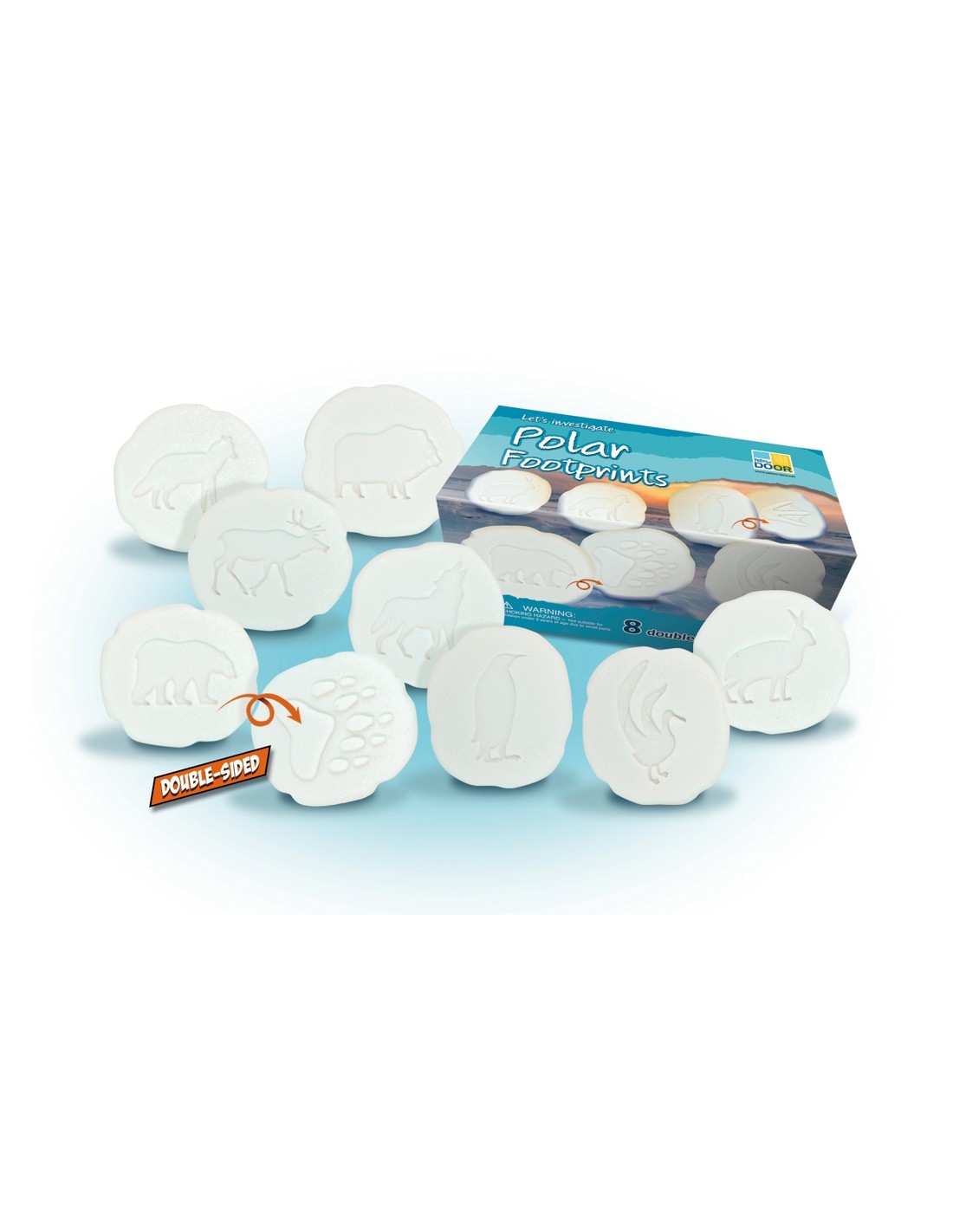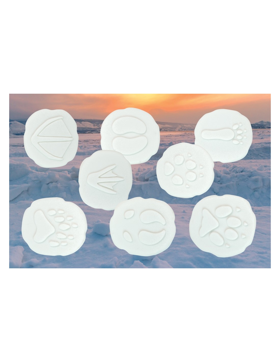 El lot inclou les petjades d'os polar, ren, llop, bou moscat, guineu àrtica, llebre àrtica, albatros i pingüí. Els nens podran comparar les diferents formes de les trepitjades i explorar com cada animal s'ha adaptat al seu gèlid entorn. Aquesta activitat no sols estimula la curiositat natural dels petits, sinó que també fomenta la seva capacitat d'observació i pensament crític.