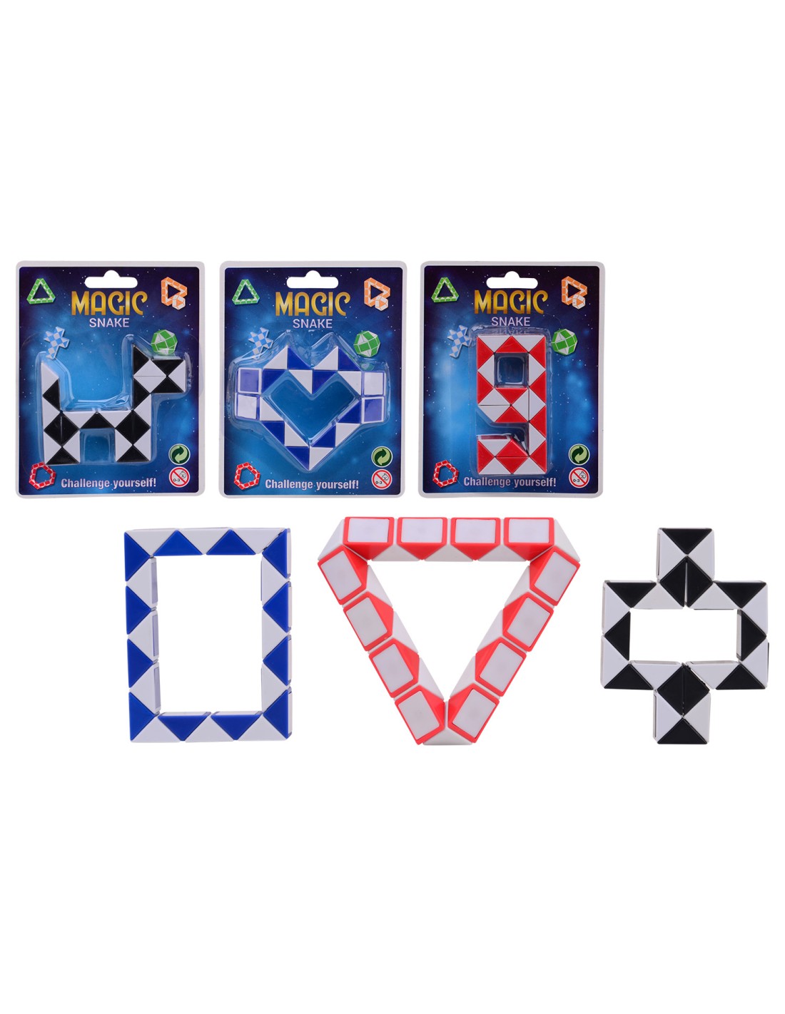El Joc de la Serp és una meravellosa obra d'enginyeria i creativitat que desafiarà la ment i les habilitats motores de qualsevol persona. Aquest trencaclosques de plàstic està format per 24 triangles de dos colors, que es poden transformar des d'una forma de cor fins a un gos, i tot el que hi hagi al mig. La màgia està en la manera com aquests triangles estan connectats, formant una llarga corda que pot ser girada i torta per crear una varietat infinita de figures i formes.
