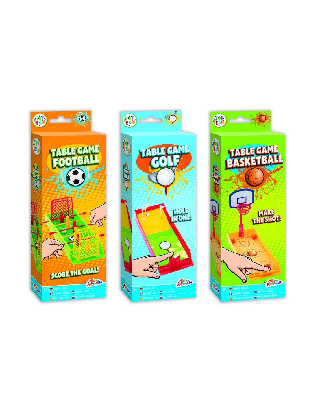 El Joc de taula d'esport és una excel·lent opció perquè els nens gaudeixin dels seus esports favorits en qualsevol lloc. Disponible en tres versions emocionants: futbol, golf o bàsquet. Aquest set permet als petits experimentar la diversió de l'esport des de la comoditat de la seva llar. Cada joc està dissenyat per a capturar l'essència de cada esport, oferint una experiència lúdica que desenvolupa la coordinació, l'enfocament i les habilitats estratègiques dels nens.