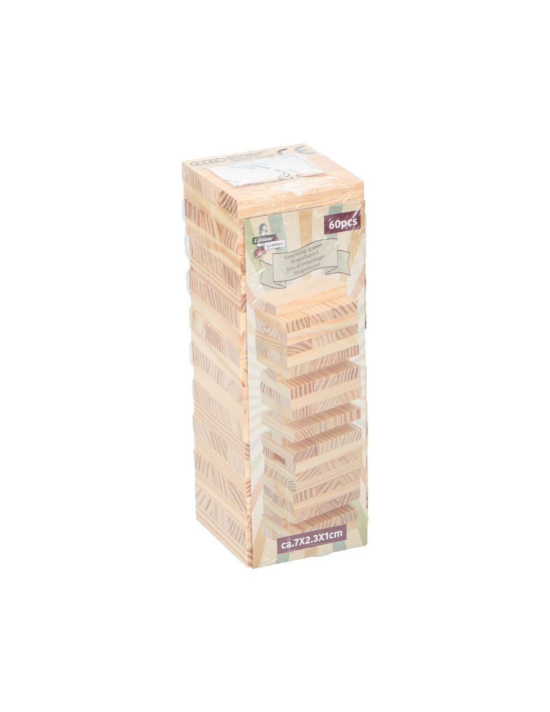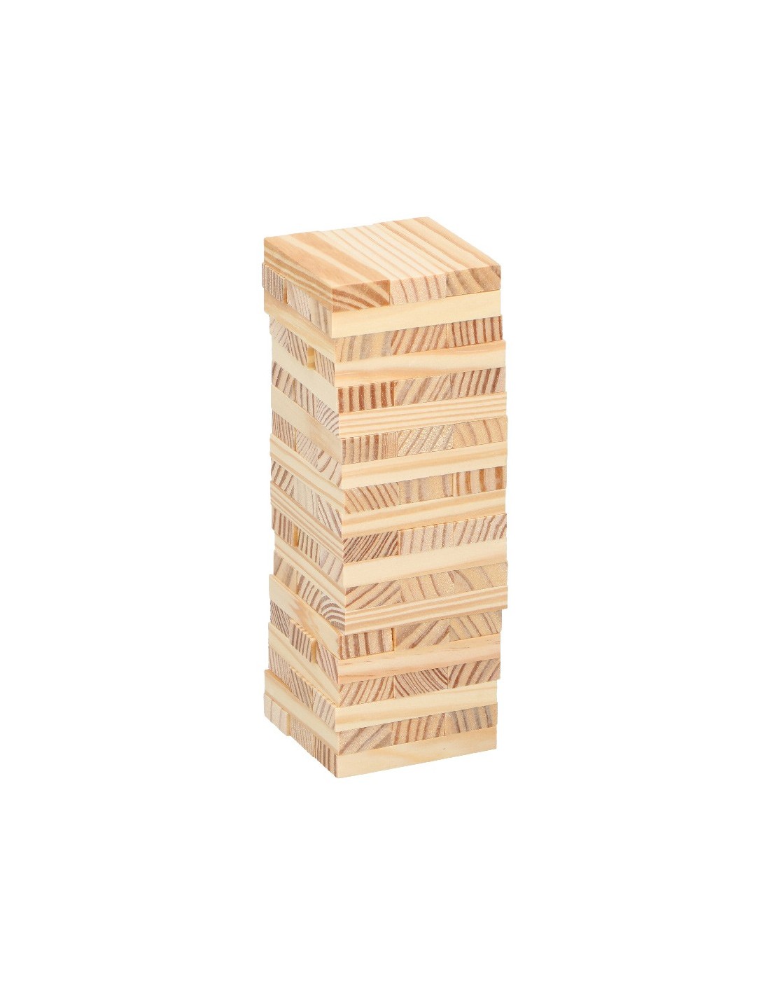 Es juga amb 60 peces de fusta que es situen en formació creuada per nivells de tres peces juntes (han de tenir la proporció indicada, de manera que formin un quadrat en col·locar-se junts) fins a conformar una torre de 18 nivells d'altura. Cada jugador, per torns, haurà de retirar una peça de qualsevol dels nivells inferiors de la torre utilitzant només dos dits d'una mateixa mà, i procurant que no caigui la torre, i col·locar-lo en el nivell superior per a completar-lo. El jugador que tiri la construcció ja sigui retirant una peça de fusta o esfondrant la torre per accident serà el perdedor del joc. Gana el jugador que hagi realitzat la jugada anterior a la que va fer que es derroqués la torre. Qui serà el guanyador?