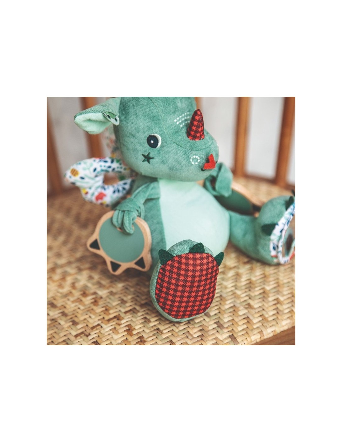 Joe el Drac està confeccionat amb diferents materials, textures i activitats fan d'ell una font de descobriment i un amic inseparable. És un adorable petit drac que amaga diverses activitats per tot el seu cos: