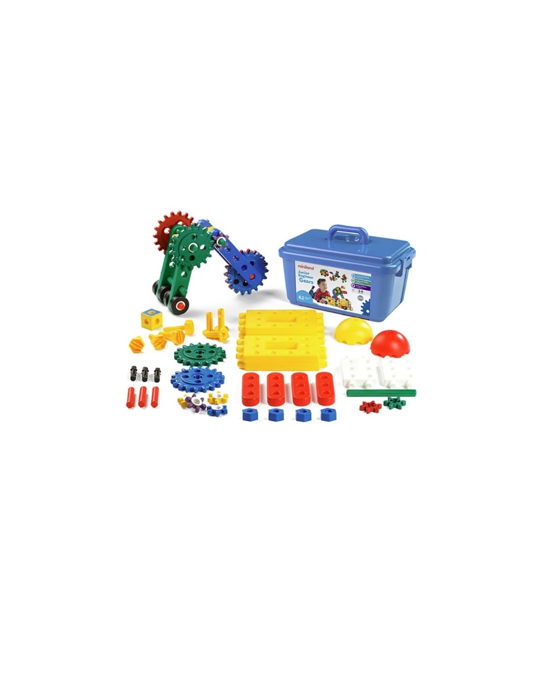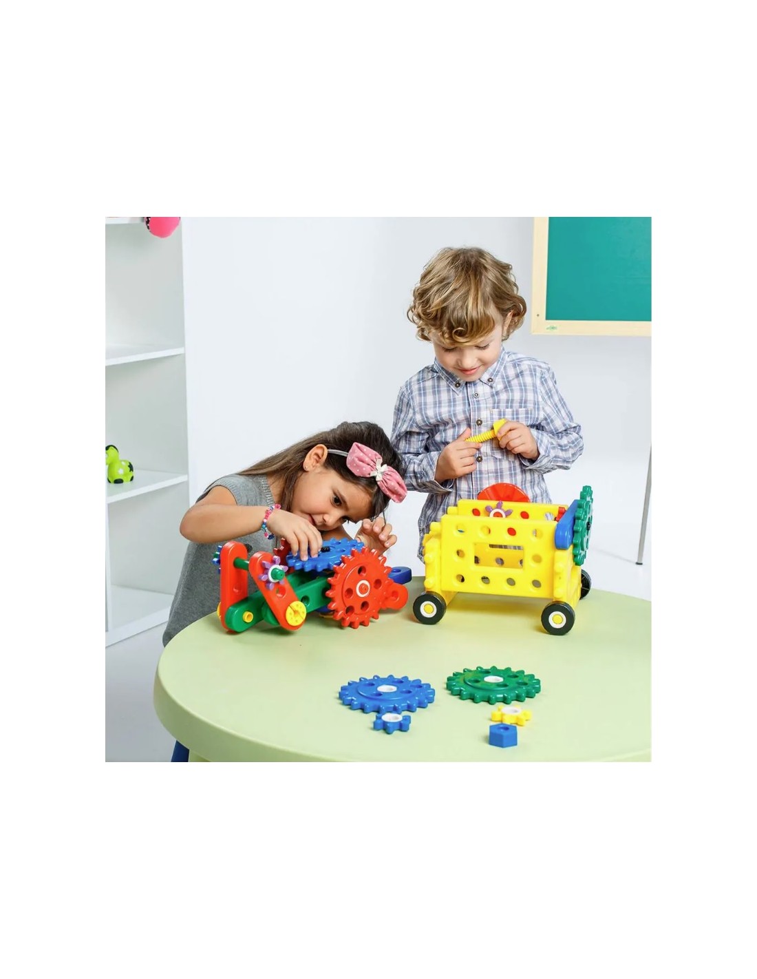Construcció amb engranatges de diferents tamanys, per dotar els muntatges de moviment. A més a més d'afavorir la psicomotricitat i l'orientació espaial, contribueix a la comprensió de la relació "causa-efecte".