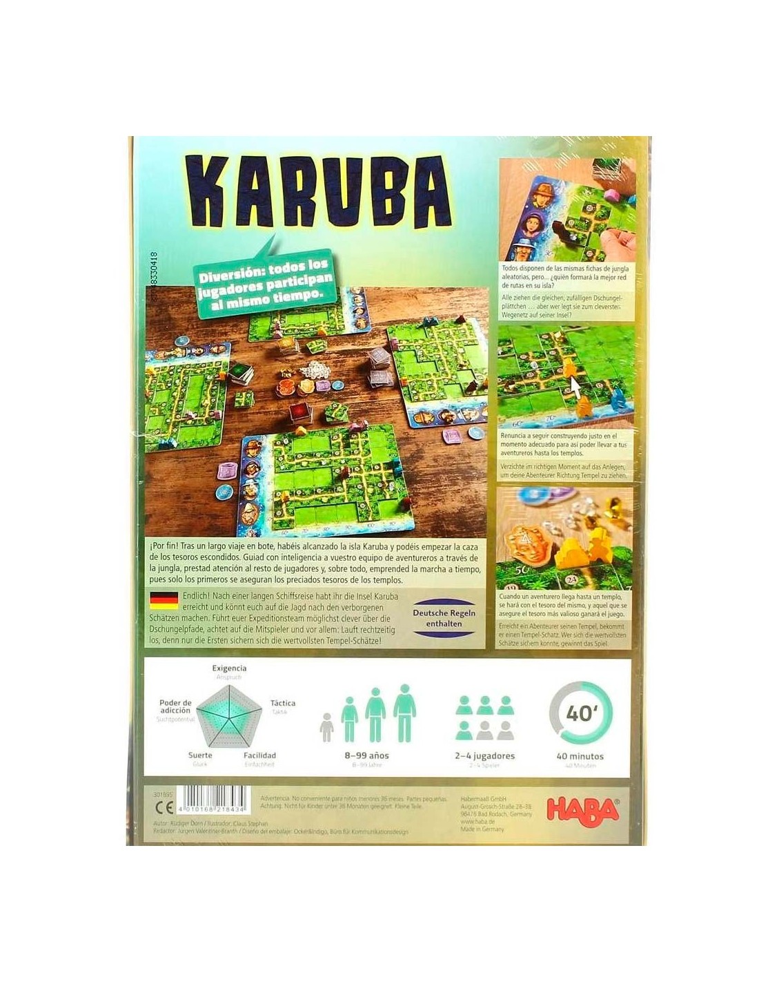 Karuba és un dels jocs d'estratègia més venuts de la marca Haba. Una fascinant aventura per 2-4 jugadors pensada per a nens i nenes a partir de 8 anys i al qual pot jugar tota la família.