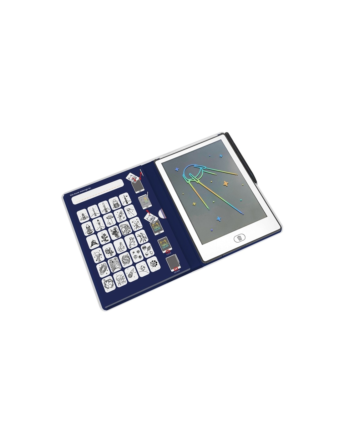 Inclou un bolígraf especial per a dibuixar sobre la pantalla i compta amb la funció de bloquejar el dibuix en curs, perquè els petits artistes puguin guardar les seves creacions abans d'esborrar-les. La bateria CR2025 garanteix un ús prolongat i senzill, sense complicacions.