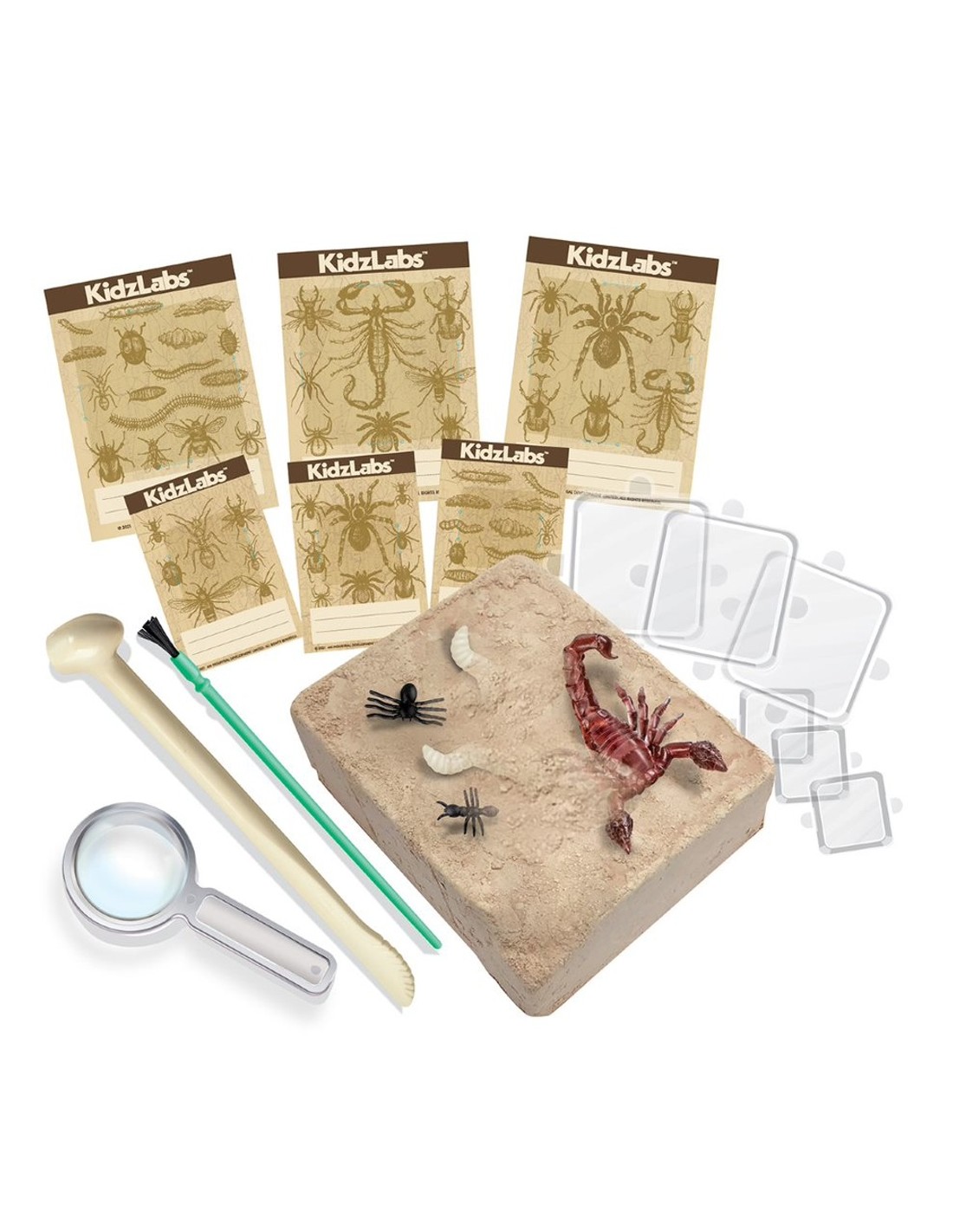 Excava a través d'aquesta roca de guix per a desenterrar un munt de bestioles, fes servir les eines proveïdes en el kit per a excavar… Mira si pots desenterrar els cucs que brillen en la foscor! És una passada!