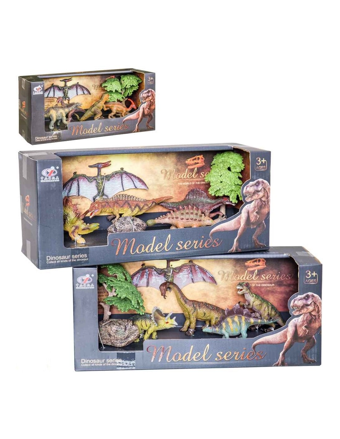 Fins a 5 dinousares diferents vénen inclosos en aquest kit. I no és només això, perquè a la caixa també trobaràs elements d'entorn com un arbre o una roca que ajudaran a donar ambient al les teves aventures amb aquests animals ancestrals. Pensat per a nens i nenes a partir de 3 anys, els dinosaures tenen una mitjana de 13 cm de mida i estan fabricats en plàstic i vinil i molt resistent. Aprèn els noms, les característiques i converteix-en protagonistes de les històries que neixin de la teva imaginació.