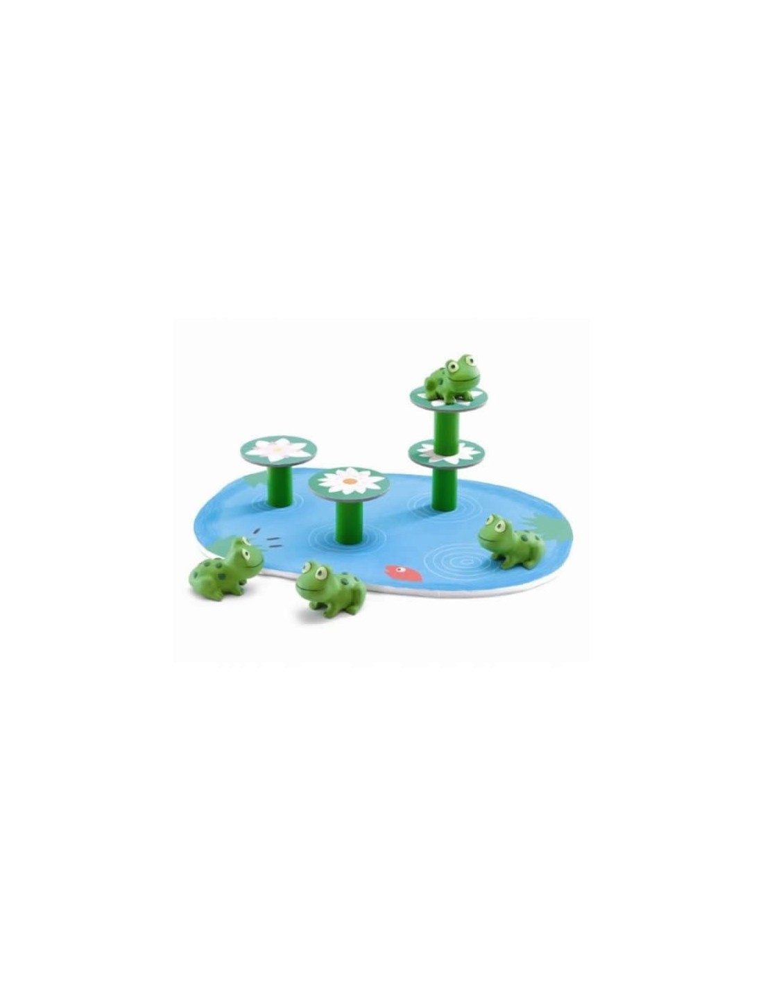 Les petites granotes salten d'un nenúfar a un altre procurant no caure a la bassa, però, ¿tindran prou equilibri? Un joc que afavoreix el desenvolupament de les habilitats manuals i la interacció entre els nens i els seus pares.