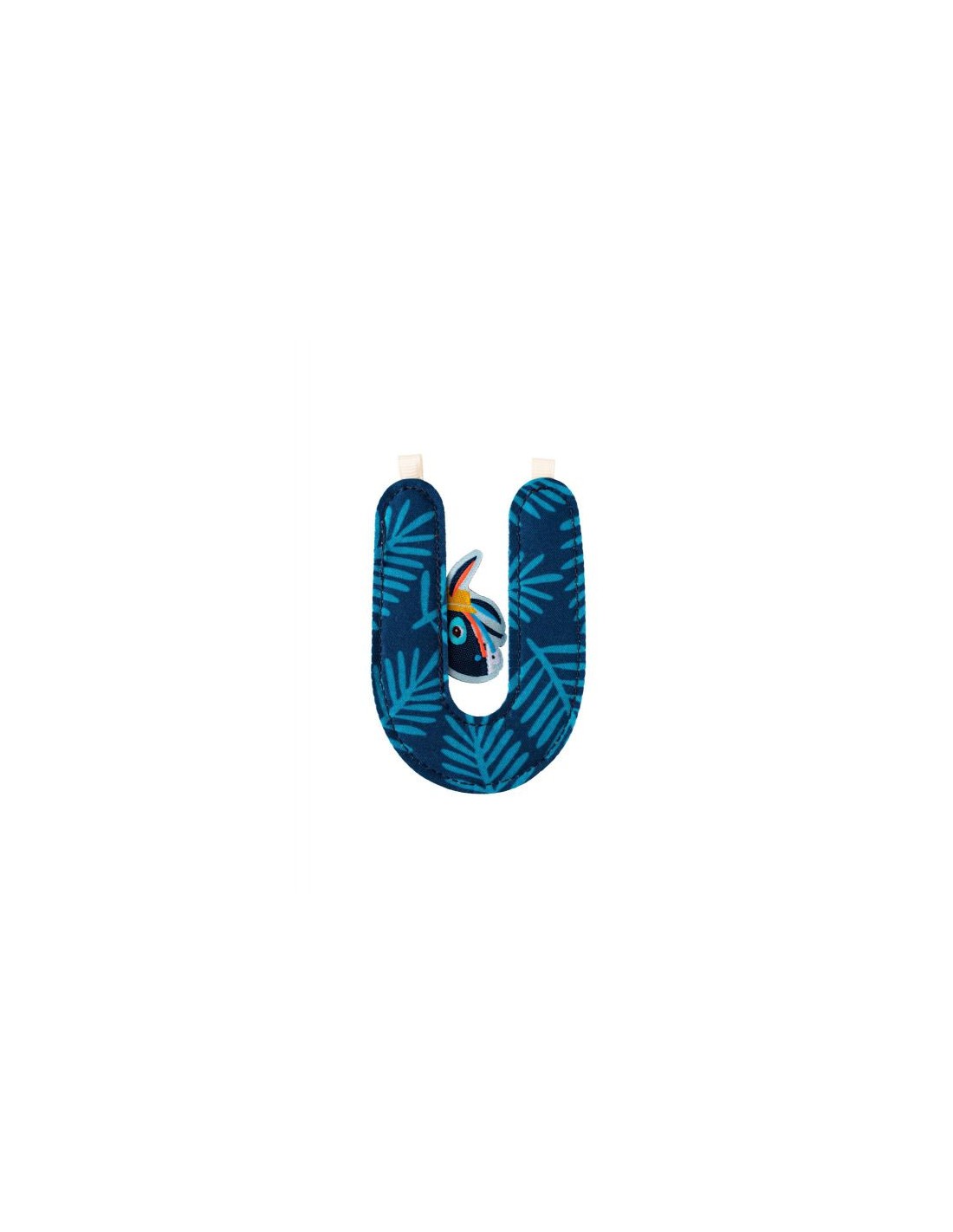 Una de les vocals de la col•lecció de lletres de l'abecedari de Lilliputiens. Aquesta lletra "U" està feta de tela i té 2 cares diferents: una cara és de color blau amb solets de color verd; l'altra cara és de color vermell amb un bonic estampat de color rosa. Escull la cara que més t'agradi i penja aquesta i les altres lletres a partir de la nansa que trobaràs a la part superior. A més, aquesta "U" va acompanyada de l'eruga Juliette, cosa que alegrarà encara més la teva habitació.