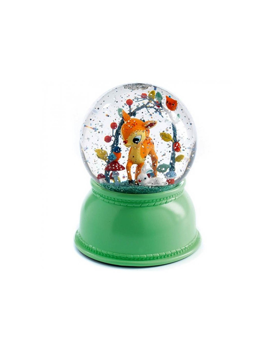 Segur que no trobaràs una llum tan bonica com aquesta. Com veus, té la forma d'una bola de neu, que decorarà la teva habitació durant el dia i la il·luminarà de forma suau durant la nit. Només has de prémer el botó que té a la part inferior i veuràs com la llum comença a produir diferents colors i la purpurina de l'interior de la bola comença a girar. No fa falta que la sacsegis! El mateix mecanisme de la llum farà que les escames girin per tota la bola. A l'interior, un dolç cérvol t'acompanyarà cada nit. A més, té un temporitzador de dues hores, així que no hauràs de preocupar-te per si t'adorms. Requereix 3 piles LR6 que no s'inclouen. Aquest producte es serveix dins d'una còmoda caixa preparada per ser regalada.