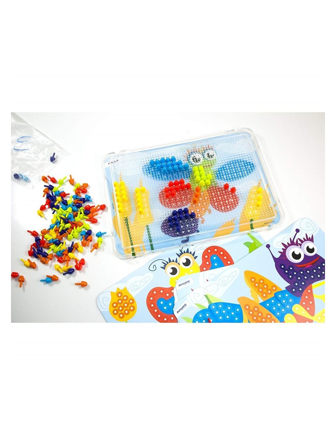 Miniland ens porta aquest complet maletí amb tot el necessari per crear diferents escenaris amb els propis de colors. El maletí inclou 180 pius (pinxos) de diferents colors, 6 fitxes amb models d'animals i una safata transparent mida a4. Mitjançant exercicis de concentració i atenció, permet el desenvolupament de la coordinació viso-motora, la creativitat, l'orientació espacial i la discriminació de colors. Un cop completats tots els dibuixos els més petits poden deixar volar la seva imaginació i crear composicions úniques per si sols. Presentat en pràctic maletí d'emmagatzematge amb nansa per transportar, aquest joc està pensat per a nens i nenes entre 3 i 6 anys.