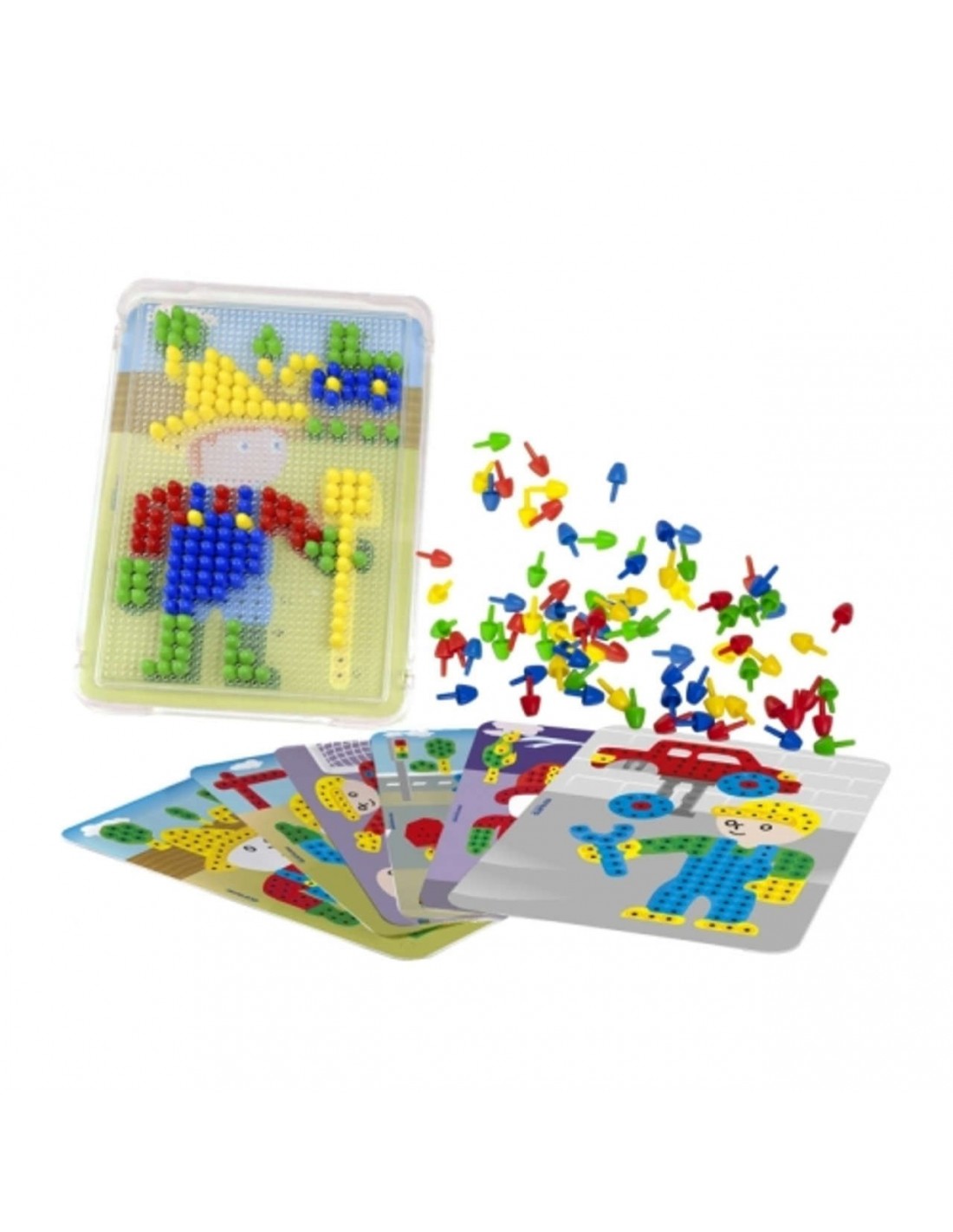 Diferents dibuixos amb una placa per poder fer dibuixos a partir dels diferents pius de colors. Col·loca el dibuix sota la placa i ves completant el dibuix col·locant els pius a sobre del color que els hi toqui.