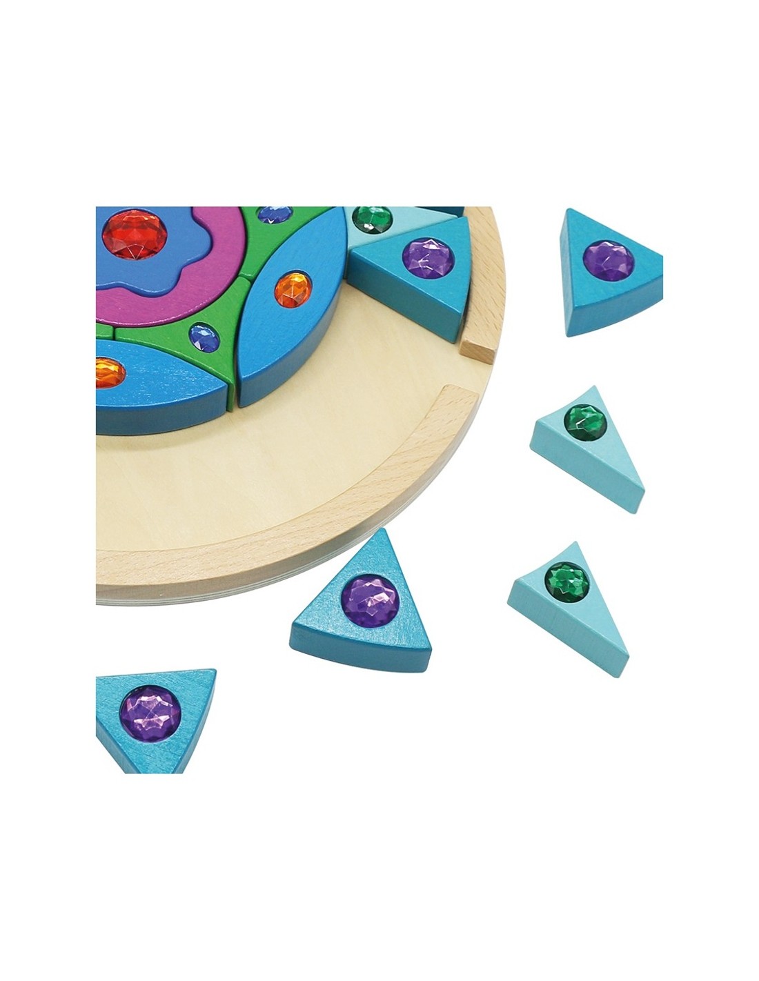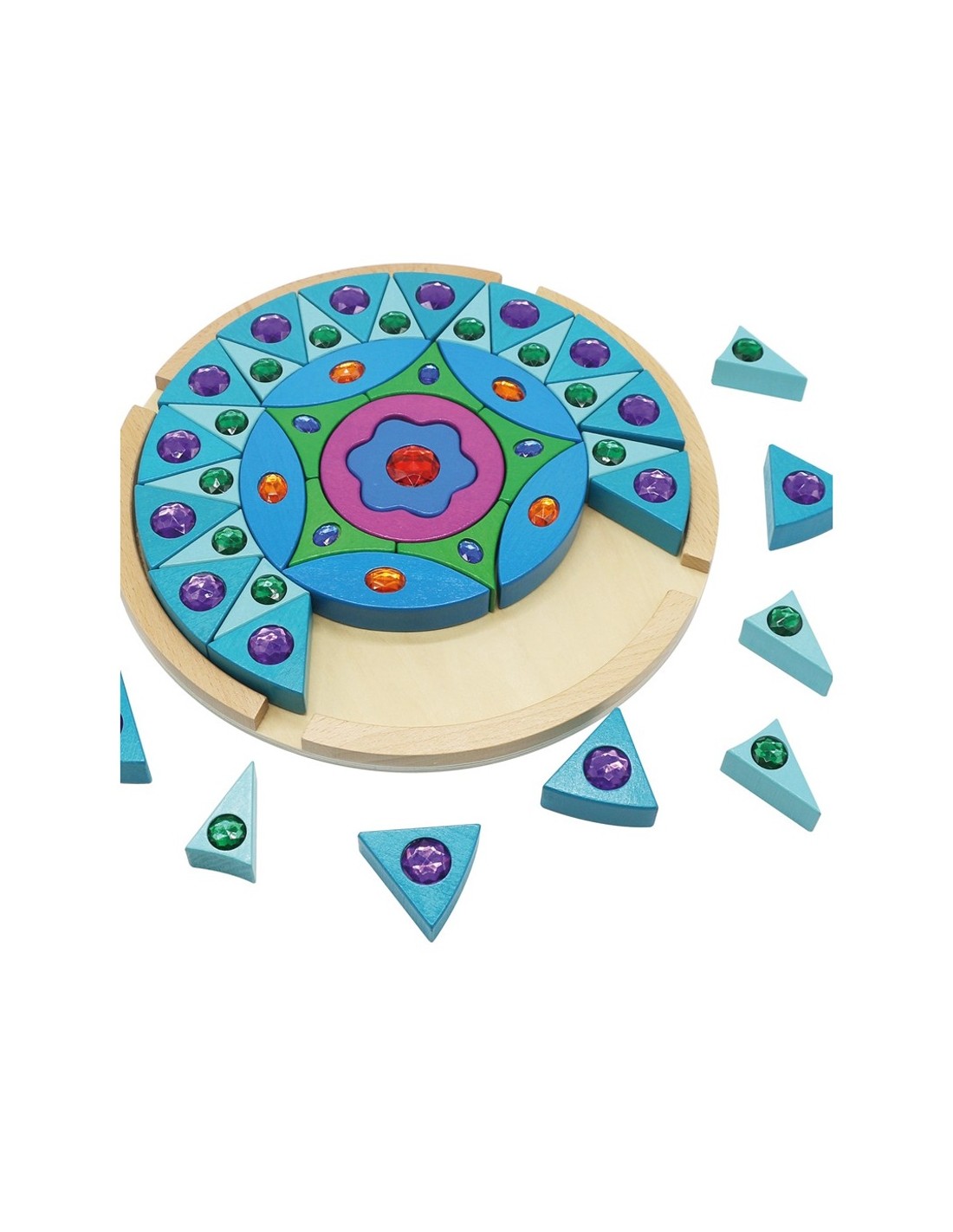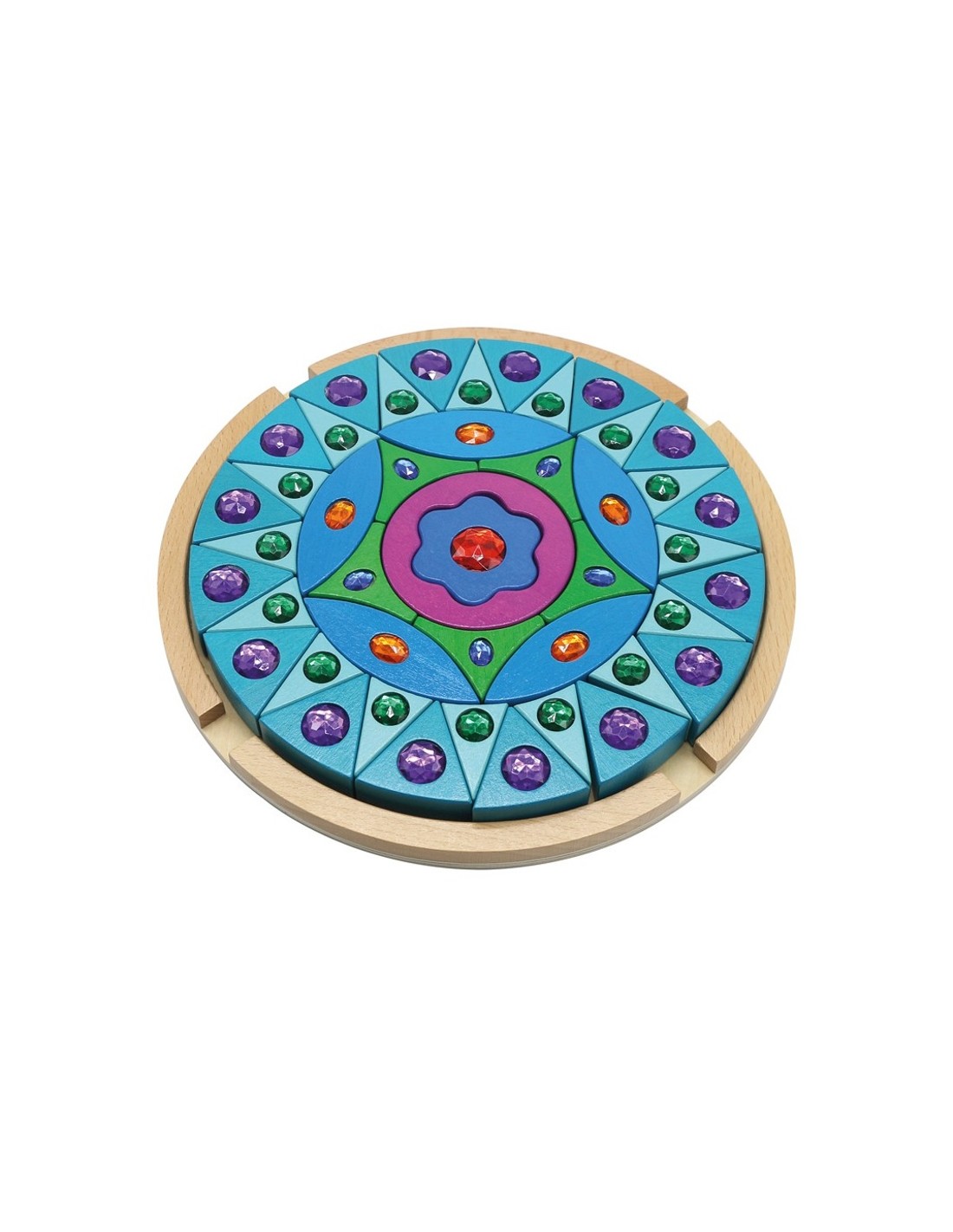 Et presentem aquest preciós mandala de fusta brillant amb insercions de gemmes de colors. Potència la capacitat creativa i les funcions mentals de concentració, la coordinació ull-rajo, la percepció i la capacitat imaginativa.