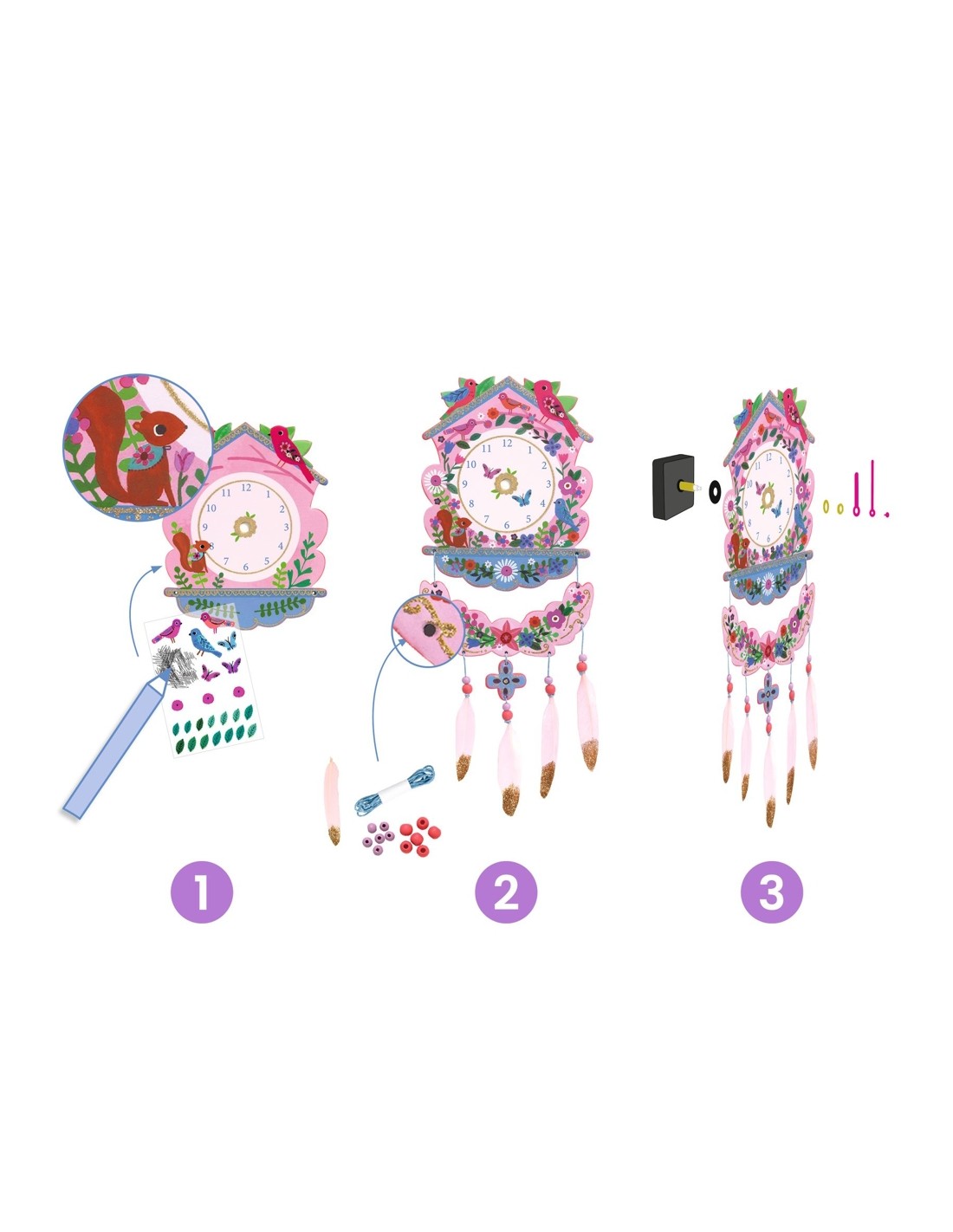 Endinsa't en el món encantador de la rellotgeria amb la Manualitat Rellotge de bufó DIY de la prestigiosa marca francesa Djeco. Aquest set ofereix una experiència única del "fes-lo tu mateix" (DIY), permetent als aficionats a la manualitat muntar, crear i decorar un fantàstic rellotge de paret amb un mecanisme silenciós que no sols embelleix l'espai, sinó que també manté l'hora amb precisió.