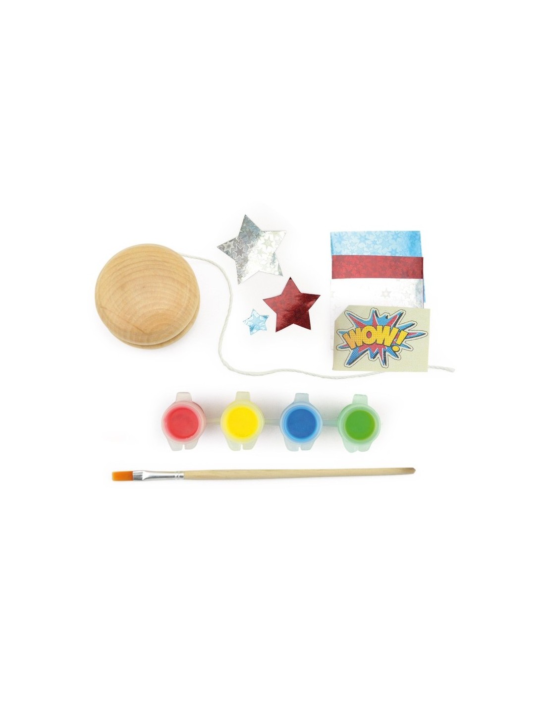 Dissenya el teu propi io-io de fusta amb aquest pack d'Andreu Toys! Podràs pintar-lo i afegir-li adhesius perquè el teu io-io sigui únic en el món. Dins de la caixa trobaràs 1 jo-jo de fusta, pintura, pinzell, adhesiu i paper làser. Deixa fluir el teu costat més artístic i crea el teu propi io-io!