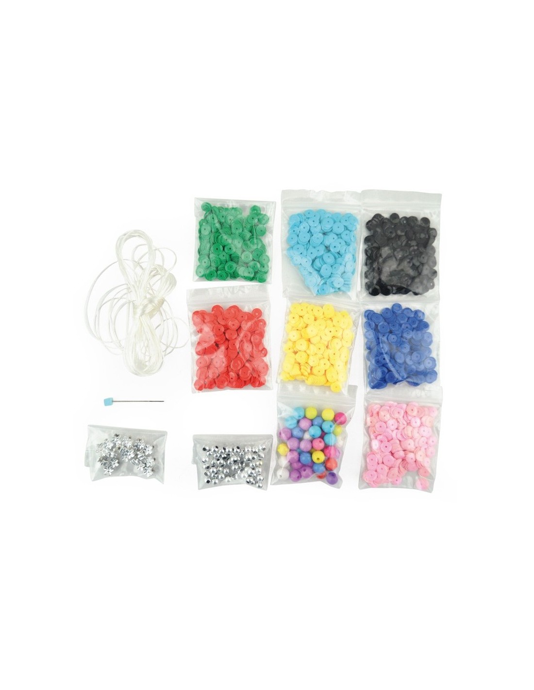 El lot inclou tot el necessari perquè puguis començar a crear immediatament: lluentons brillants, comptes de diferents colors i formes, fil elàstic resistent i una agulla perquè muntar les teves polseres sigui senzill i segur. Aquest set és ideal per als nens que gaudeixen de les manualitats i volen aprendre a fer les seves pròpies creacions de bijuteria.