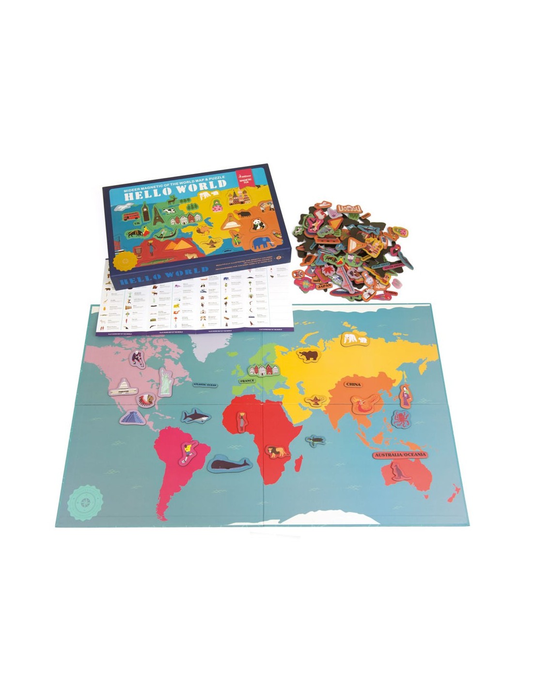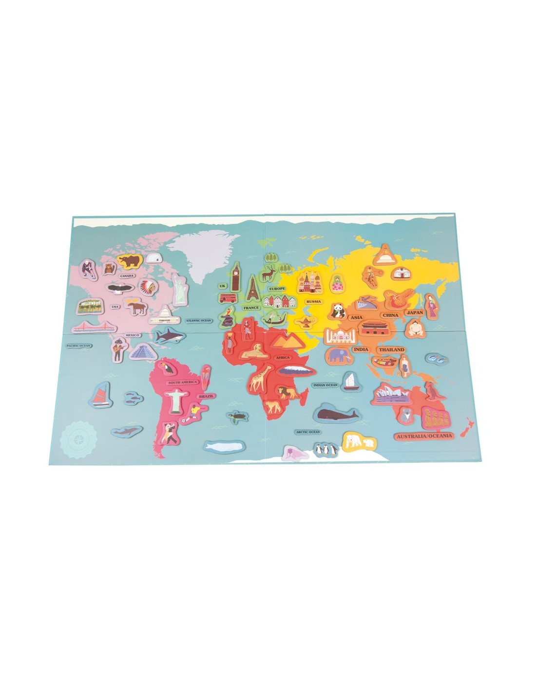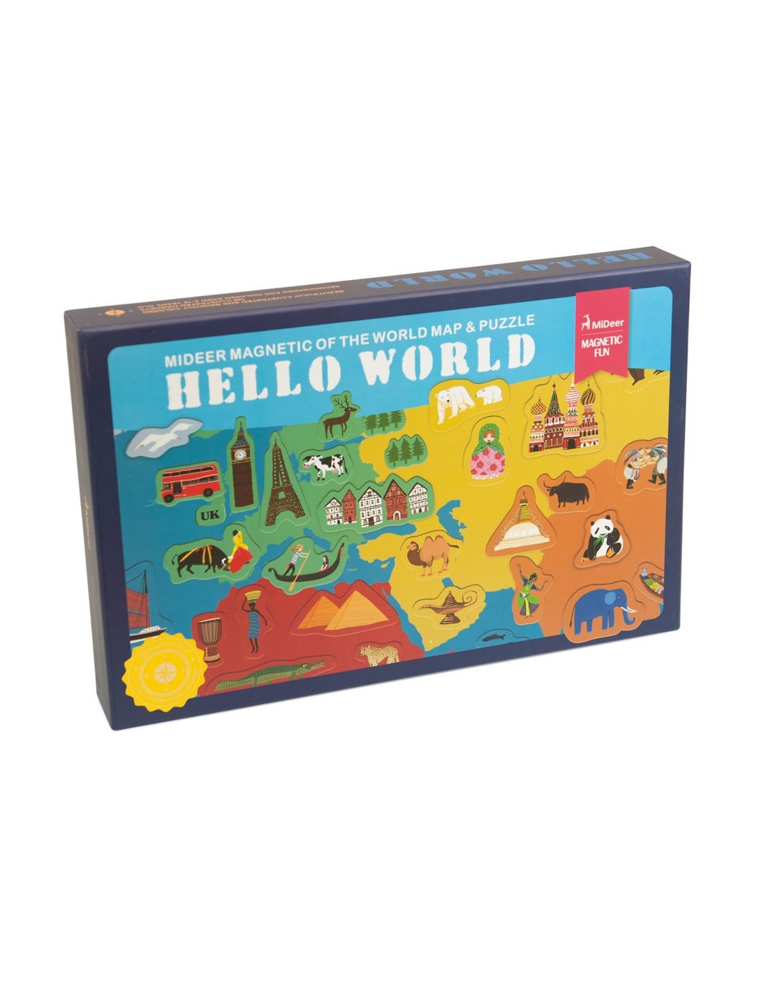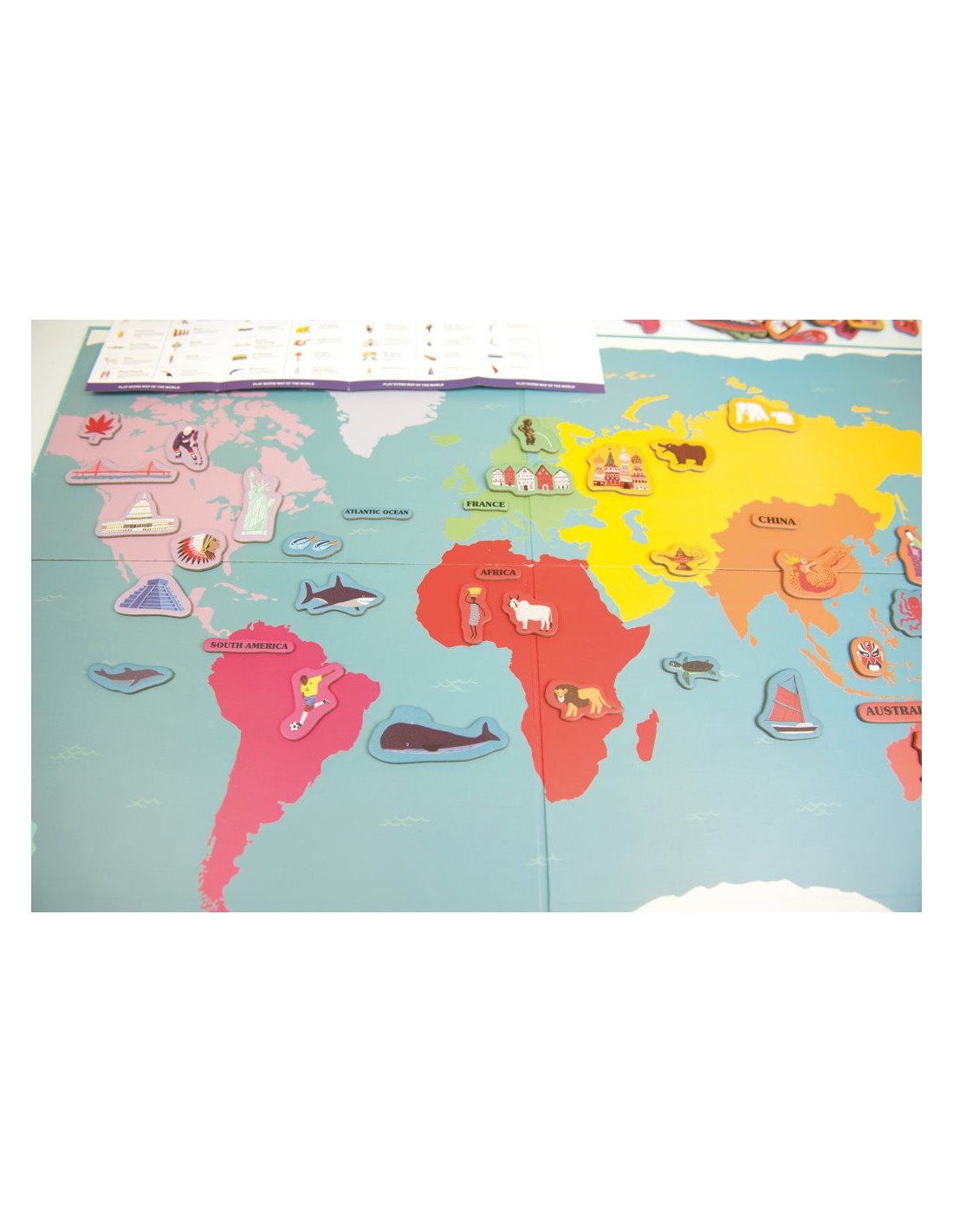 Saps on viuen els lleons? Sabries ubicar les piràmides Mayes? Si no ho saps, amb aquest fantàstic mapa ho aprendràs. Es tracta d'un mapa magnètic del món amb 148 il·lustracions magnètiques per jugar i aprendre a localitzar i ubicar els continents, els animals típìcs, els objectes característics o els grans monuments del món, en el taulell magnètic gegant. Està fabricat amb cartró de qualitat i inclou una guia que t'explicarà què és cada cosa i t'ajudarà a ubicar-la en el mapa. No hi pot haver una forma més divertida d'aprendre geografia i cultura general.