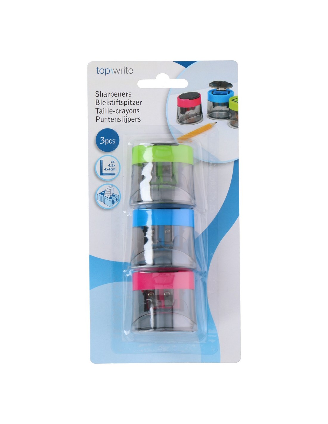 Llestos per a la tornada al col·le? Nosaltres t'ajudem amb aquesta maquineta perquè estigueu llestos i llestes i tingueu tot el necessari dins del vostre estoig escolar. A més, aquest és un pack de 3 unitats, per la qual cosa obtindràs 3 maquinetes de diferents colors i amb el seu corresponent espai per a les restes en fer punta als teus llapis, perquè no hagis d'aixecar-te a la paperera cada vegada que necessitis esmolar els teus llapis i puguis buidar-los quan et vingui millor.