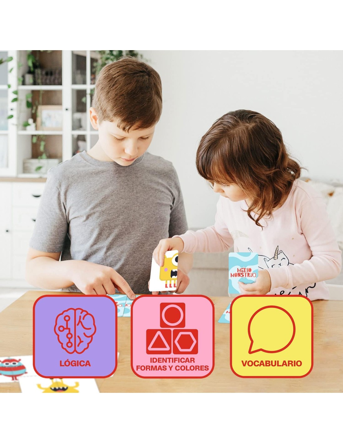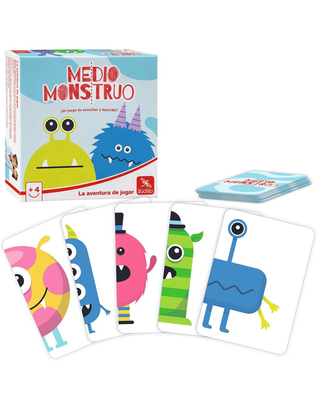 Medio Monstruo de la marca Lúdilo és un joc de cartes innovador i divertit que desafia als nens a descriure i escoltar amb atenció. Aquest joc està dissenyat per a nens a partir dels 4 anys i és ideal per a 2 a 4 jugadors. A Medio Monstruo, l'objectiu és crear tants monstres complets com sigui possible ajuntant les meitats correctes a través de descripcions precises i detallades.