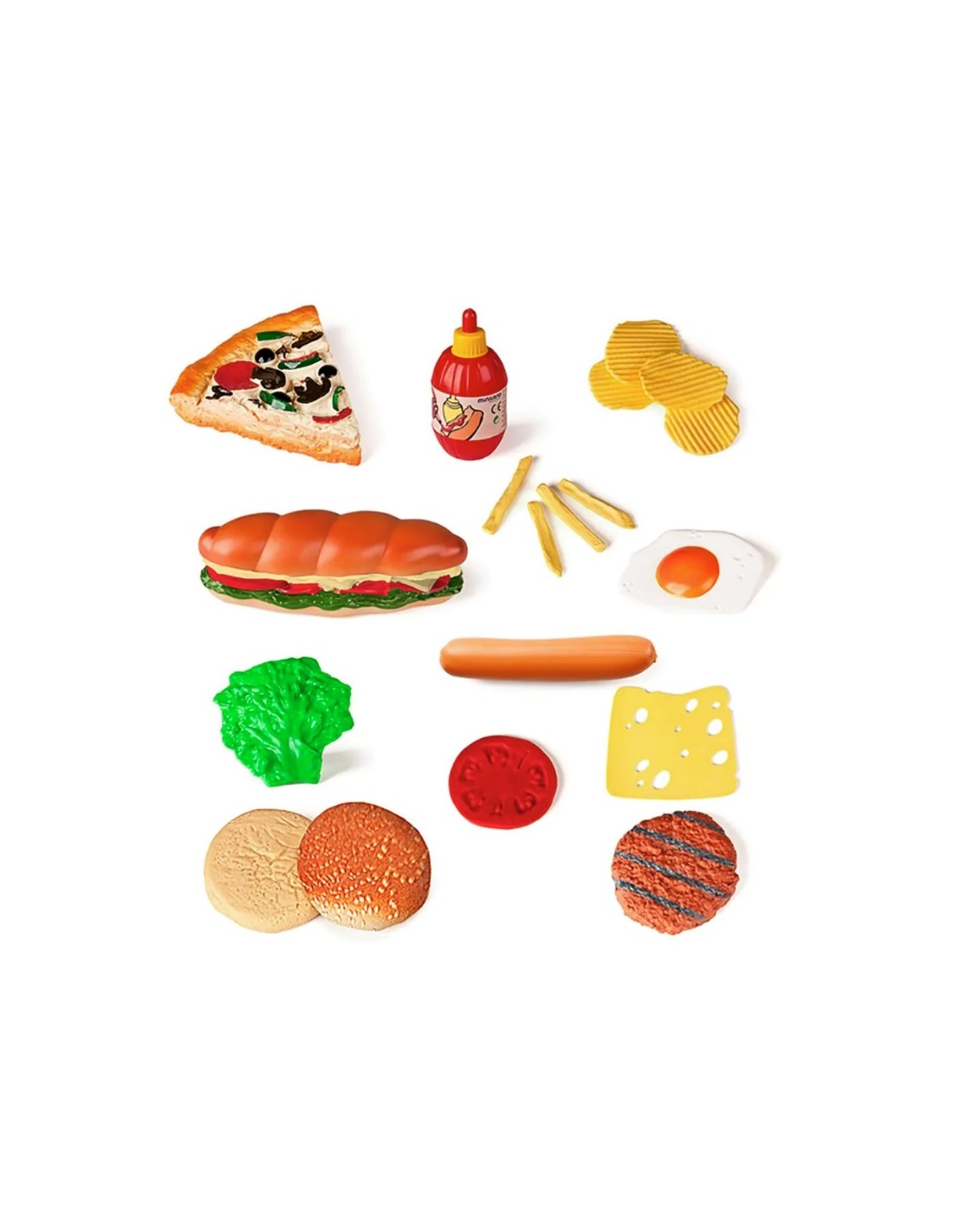 Els productes més coneguts del "menjar ràpid". Aquest pack us permetrà simular que teniu un restaurant i així passareu hores i hores de diversió. D'un tros de pizza a un entrepà, tindràs tots els essencials per a obrir la teva cuina! Gaudeix-ho!