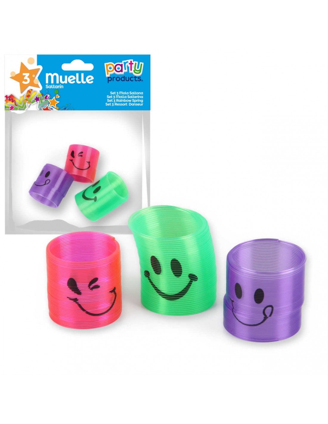 Fabricat en plàstic i amb colors vius, aquesta molla saltadora és resistent i durador, perfecte per a suportar hores de diversió. Cada lot inclou 3 molles de diferent color, cadascun amb una cara diferent, la qual cosa els converteix en un regal ideal per a qualsevol ocasió. Ja sigui per a aniversari, festes escolars o qualsevol tipus de celebració, aquestes molles són un detall perfecte que garanteix somriures i diversió.
