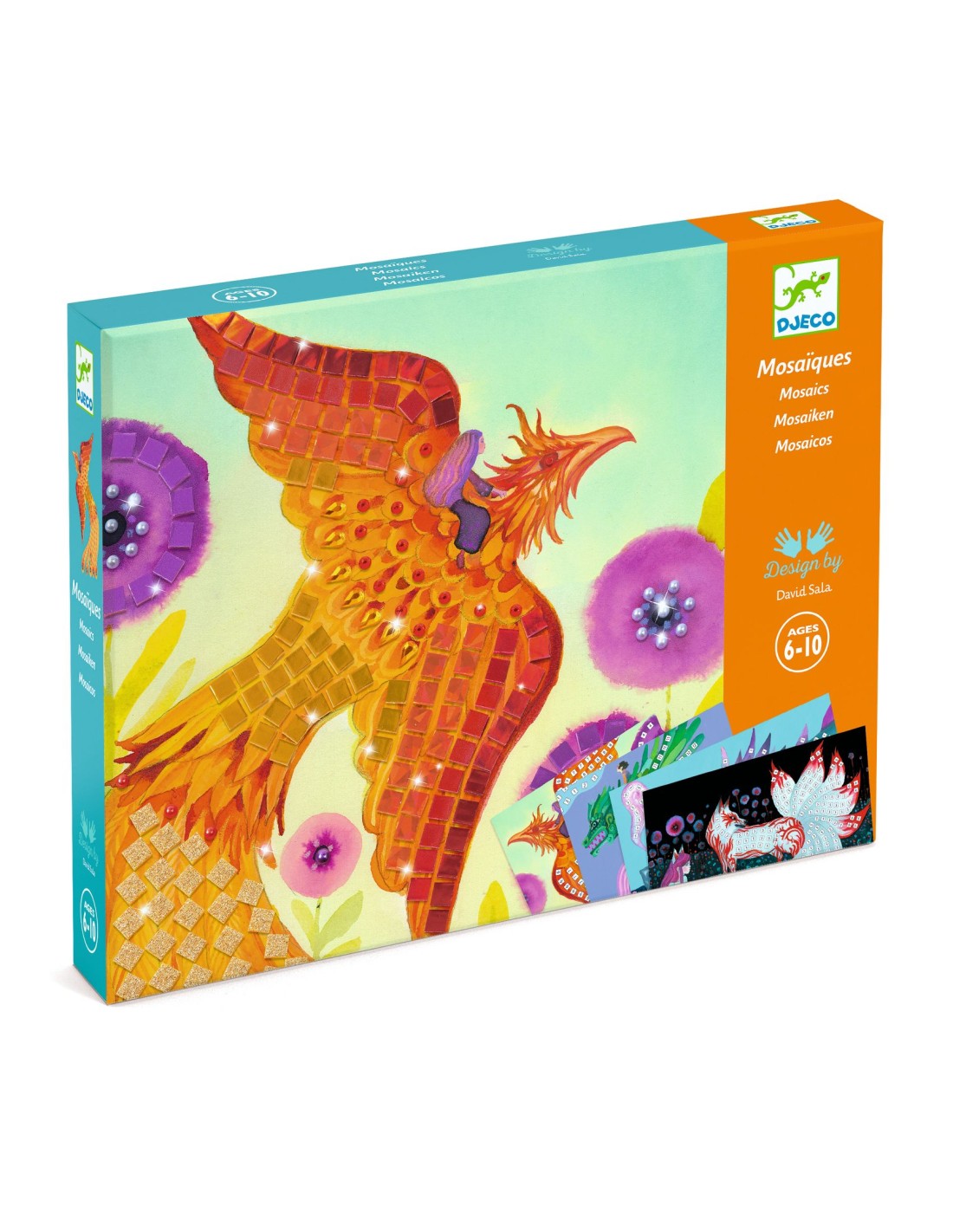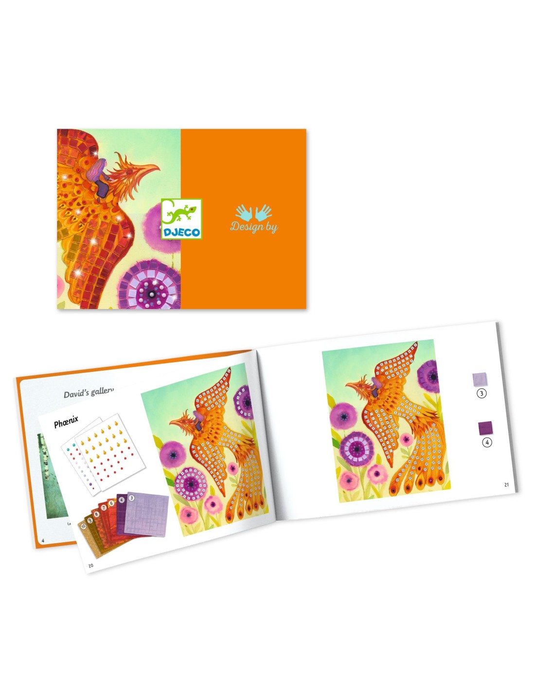 El Mosaic Criatures Llegendàries de Djeco és una activitat creativa i divertida que permet als nens crear 4 il·lustracions plenes de color, basades en dracs de llegenda. Usant la tècnica del mosaic, els nens podran desenvolupar habilitats de paciència i precisió mentre col·loquen acuradament les peces d'escuma brillant i les petites gemmes segons els números indicats. Aquesta activitat és ideal per als petits artistes que gaudeixen dels desafiaments i volen veure com una obra cobra vida a poc a poc.