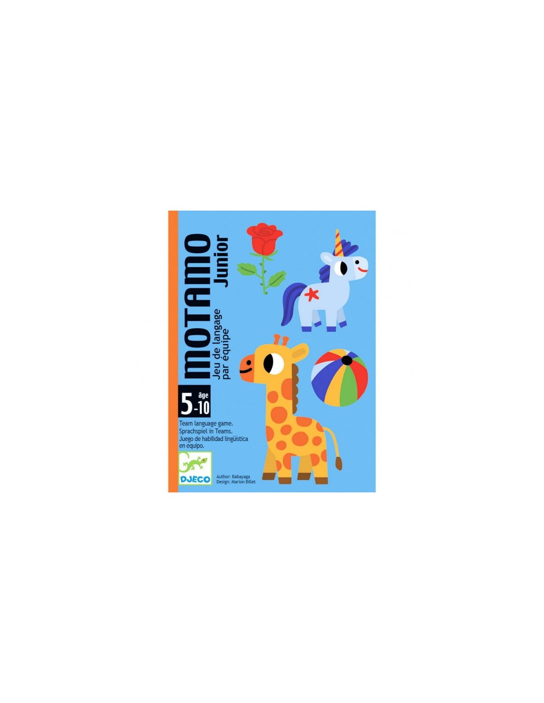 Objectes, personatges, animals ... Amb Motamo Júnior hauràs d'estar molt concentrat perquè el teu company endevini totes les paraules. Un joc d'allò més divertit per a jugar en equip amb tots els teus amiguets i familiars!Motamo Júnior és un joc basat en il·lustracions: no és necessari saber llegir!