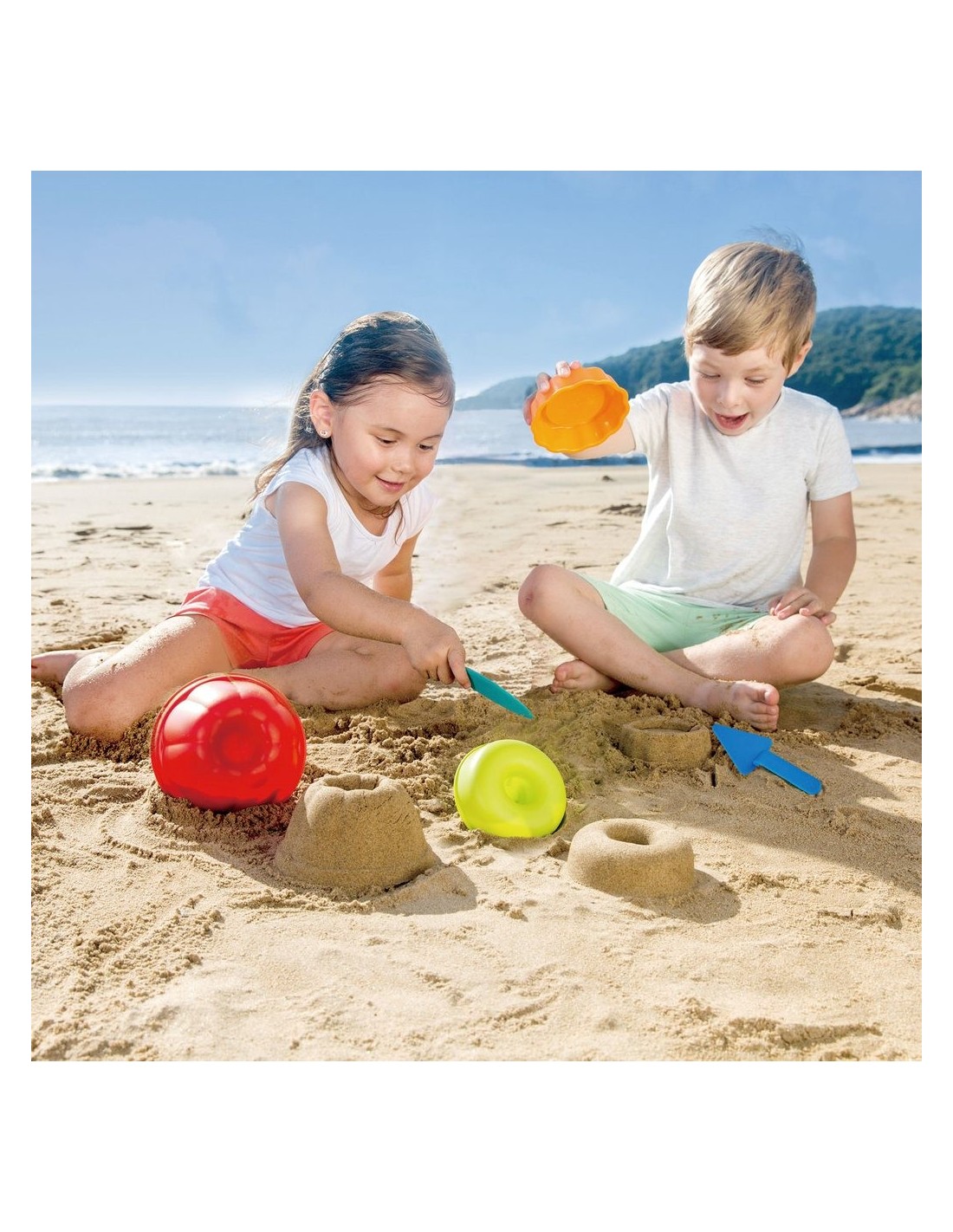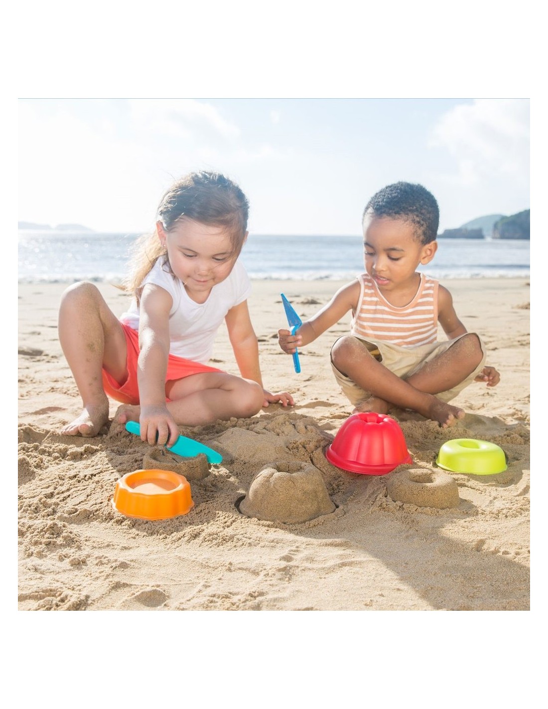 ¡Pastissers a la platja! Presentem aquest divertit kit de motlles de sorra amb el qual els més petits podran construir un donut, un pastís i un flam gegant. El pack inclou a més un ganivet amb el qual tallar les porcions i una espàtula per repartir-les als comensals. Una manera divertida i original de jugar amb la sorra i passar un dia entretingut a la platja.