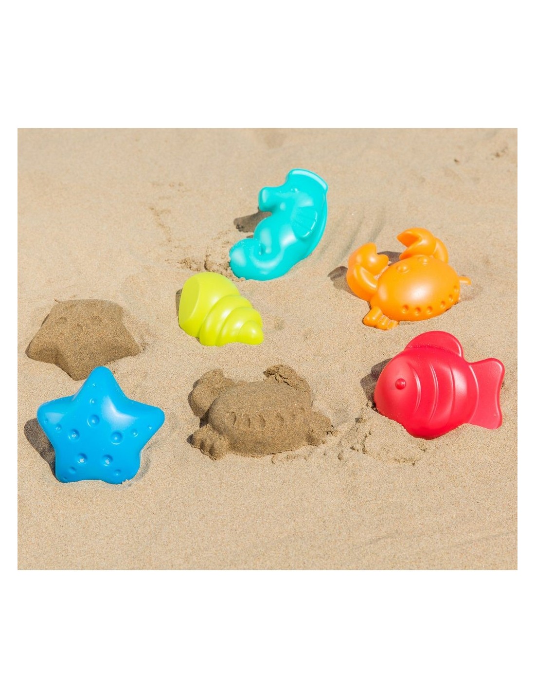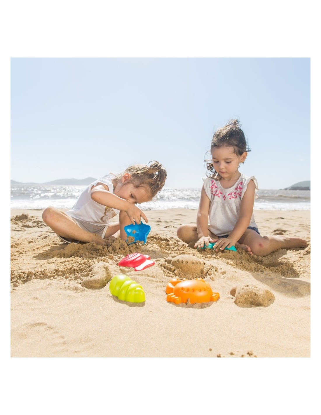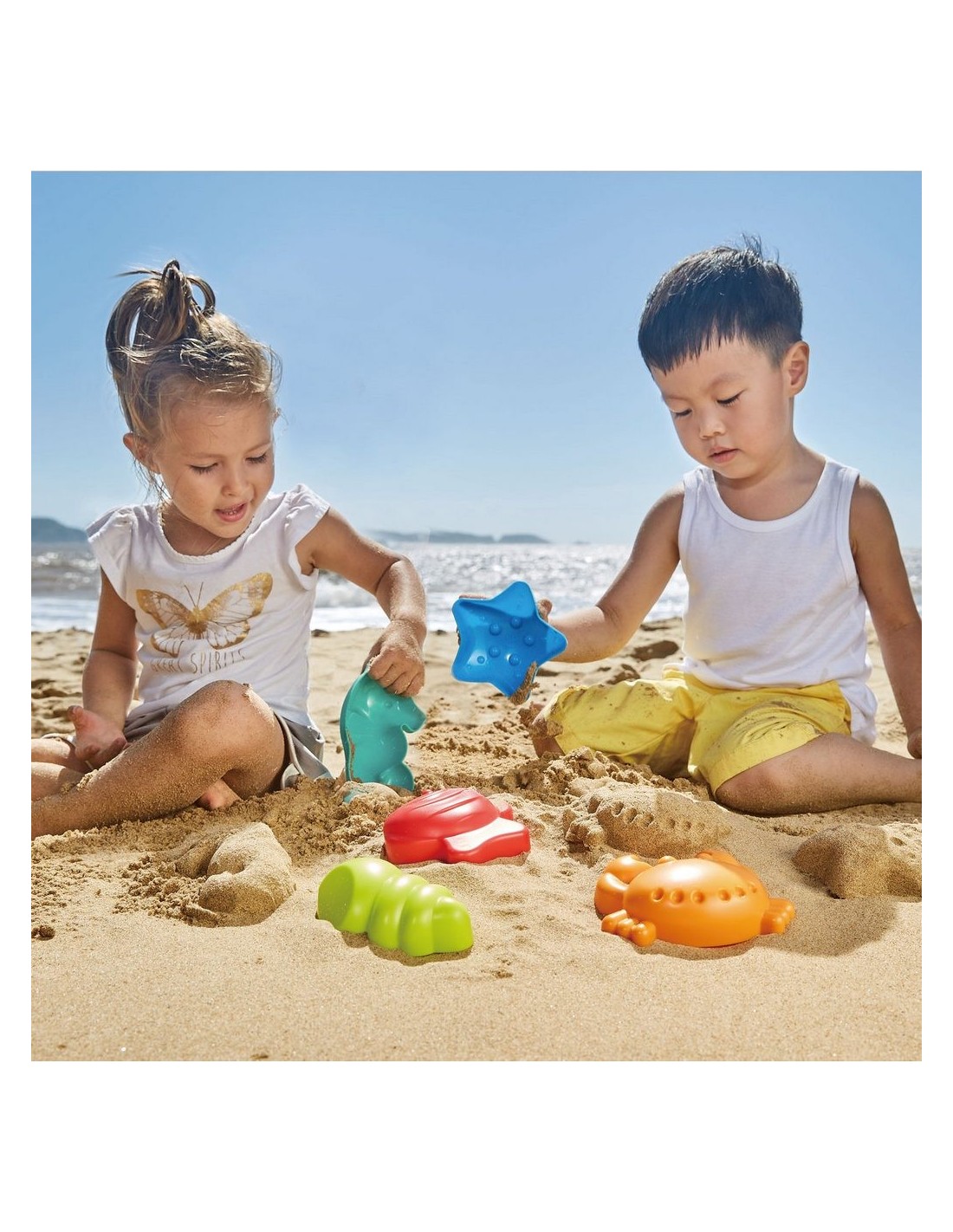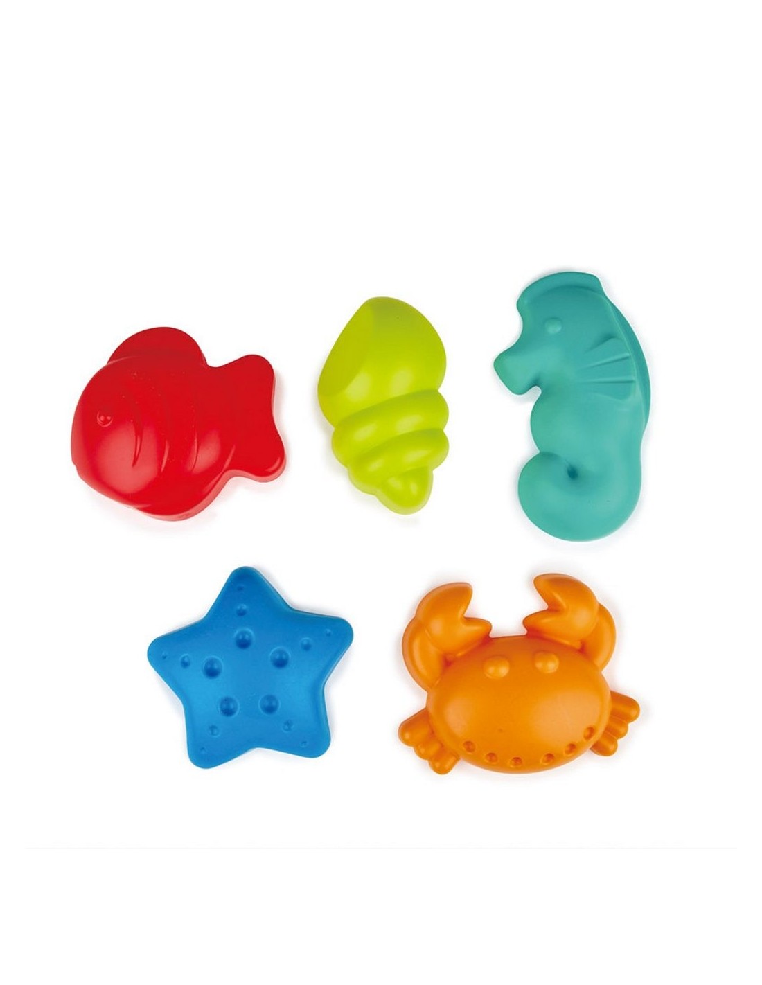 Sorra, aigua i sol... sona a una bona combinació, veritat? De la mà de Hape et portem aquests motlles de criatures marines perquè puguis jugar a la platja, el parc o el pati de l'escola amb els teus amiguets mentre aprens els noms d'aquests animalons. Inclou estrella de mar, cargol de mar, cavall de mar, cranc i peix.