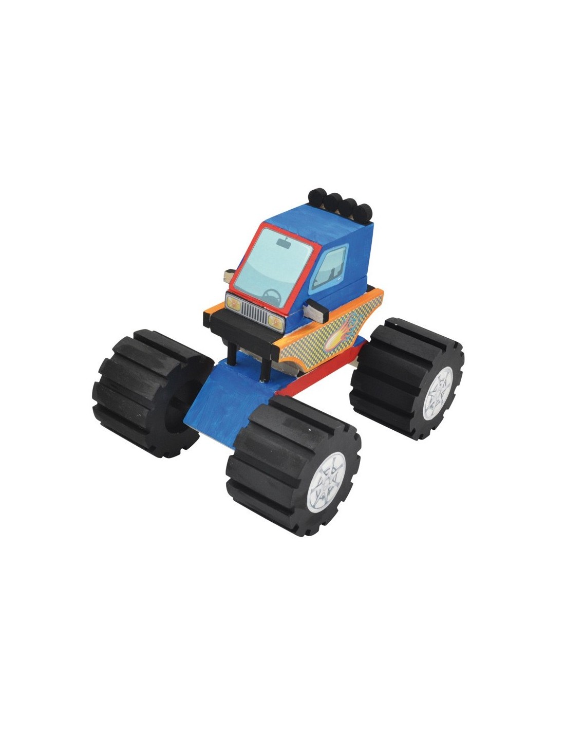 Un Montser Truck és un cotxe amb unes rodes molt grans pensat perquè sigui capaç de passar per sobre de qualsevol obstacle. Doncs bé, ara Andreu Toys ens presenta un joc amb el que podràs construir un Monster Truck amb les teves pròpies mans. Què et sembla? El joc et serveix tot el material perquè sigui tenir el joc entre les mans i començar a jugar. Concretament, trobaràs: peces de fusta amb les que es construeix el Monster Truck de joguina, cola adhesiva, 1 pinzell, pintures i adhesius. El procediment és molt senzill i s'hi inclou unes instruccions. Quan l'hagis acabat, podràs lluir-lo a l'estanteria de la teva habitació.