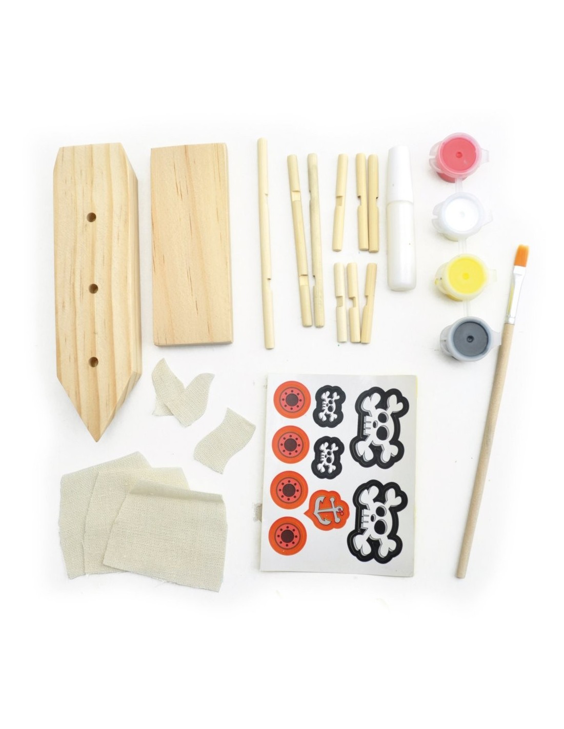A l'abordatge! Què pot ser més divertit que jugar amb un vaixell pirata i imaginar-se fantàstiques histories al seu interior? Doncs bé, ara Andreu Toys ens presenta un joc amb el que podràs construir un Vaixell Pirata amb les teves pròpies mans. Què et sembla? El joc et serveix tot el material perquè sigui tenir el joc entre les mans i començar a jugar. Concretament, trobaràs: peces de fusta amb les que es construeix el Vaixell Pirata de joguina, cola, 1 pinzell, pintures i adhesius. El procediment és molt senzill i s'inclouen les instruccions en el joc. Quan el tinguis acabat, podràs lluir-lo a l'estanteria de la teva habitació.