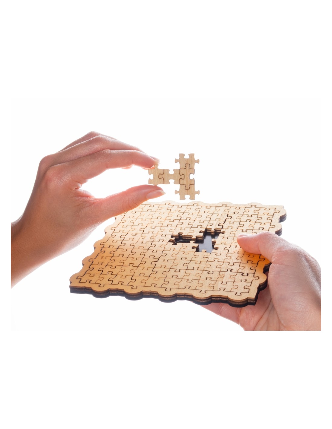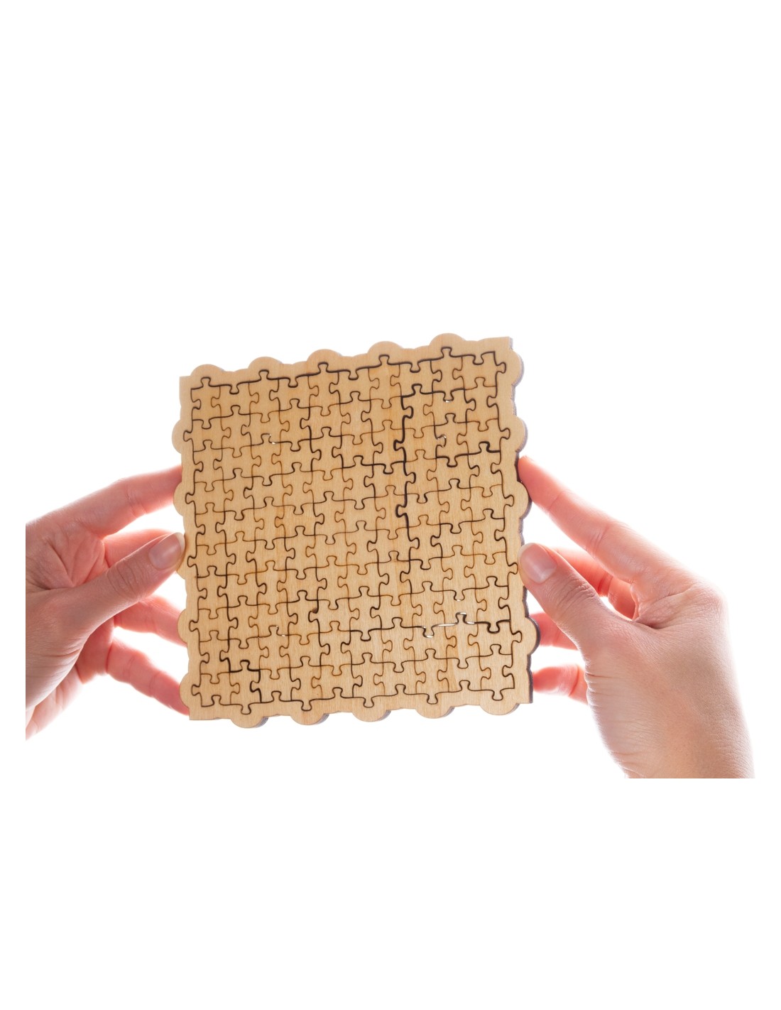 Fabricat en fusta de qualitat, Not a Jigsaw ofereix una sensació tàctil agradable i una durabilitat que convida a repetir el desafiament una vegada i una altra. La seva grandària continguda (15 x 15 x 2,5 cm) ho fa pràctic per a portar, deixar sobre una taula o regalar a un aficionat als trencaclosques originals. L'acabat està pensat perquè la manipulació sigui fluida i el joc, elegant.
