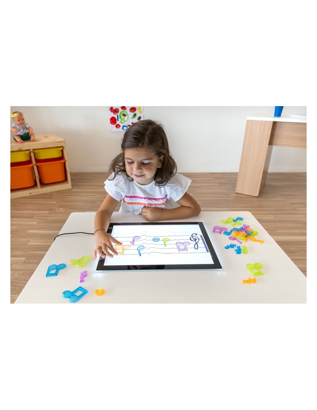 Apte per a jugar en taules de llum, aquestes notes musicals translúcides seran d'allò més estimulants per als nens. En joguines relacionades trobaràs la més nova taula de llum de Miniland!