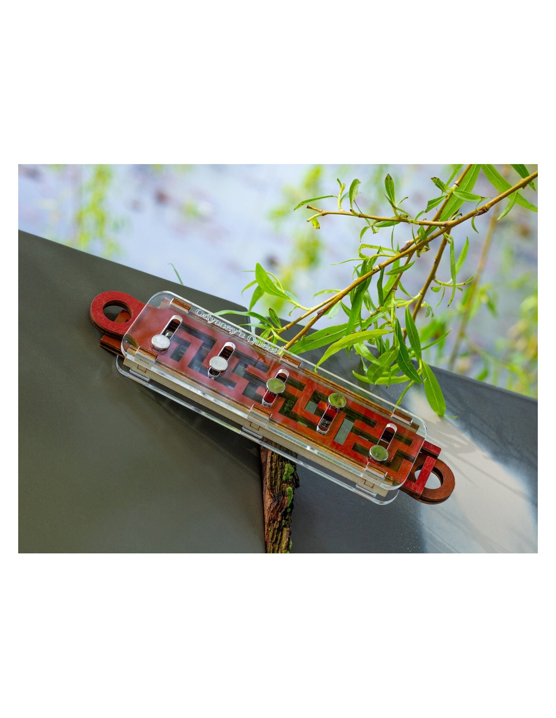 El puzle combina una mecànica refinada amb materials de qualitat: fusta resistent i plexiglàs que permeten manipular i observar l'interior del laberint sense perdre la sensació de solidesa. La seva presentació en caixa cuidada ho converteix en una peça perfecta per a regalar o col·leccionar, tant pel seu atractiu visual com per l'elegància del seu mecanisme.
