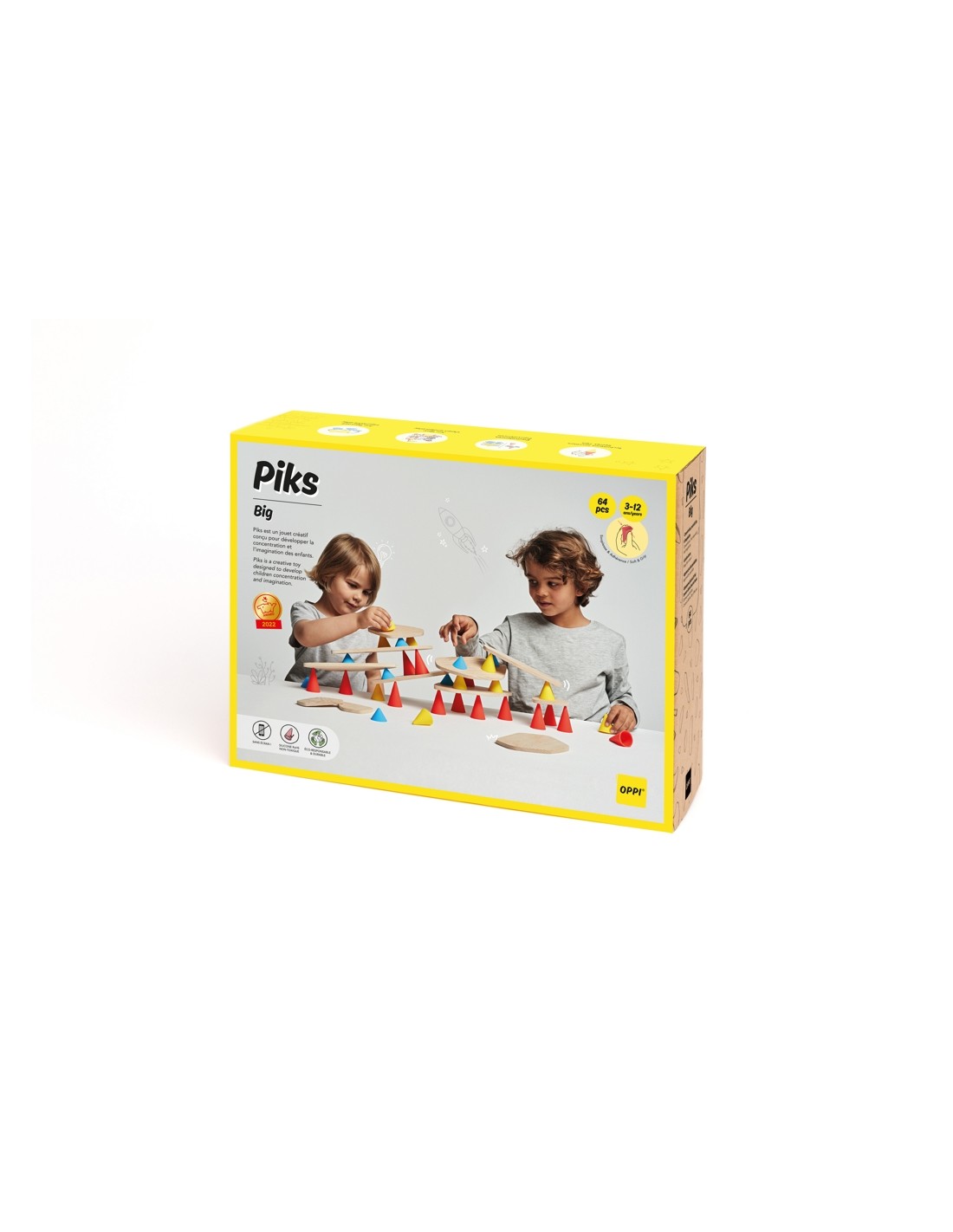 Piks Big Kit de Oppi és un joc de construcció creatiu i educatiu dissenyat per a desenvolupar l'atenció, la concentració i la imaginació de nens i nenes. Amb aquest joc, els més petits podran crear estructures originals en equilibri, posant a prova les seves habilitats motores fines i la seva capacitat de presa de decisions, convertint-se en autèntics artistes en plena concentració.
