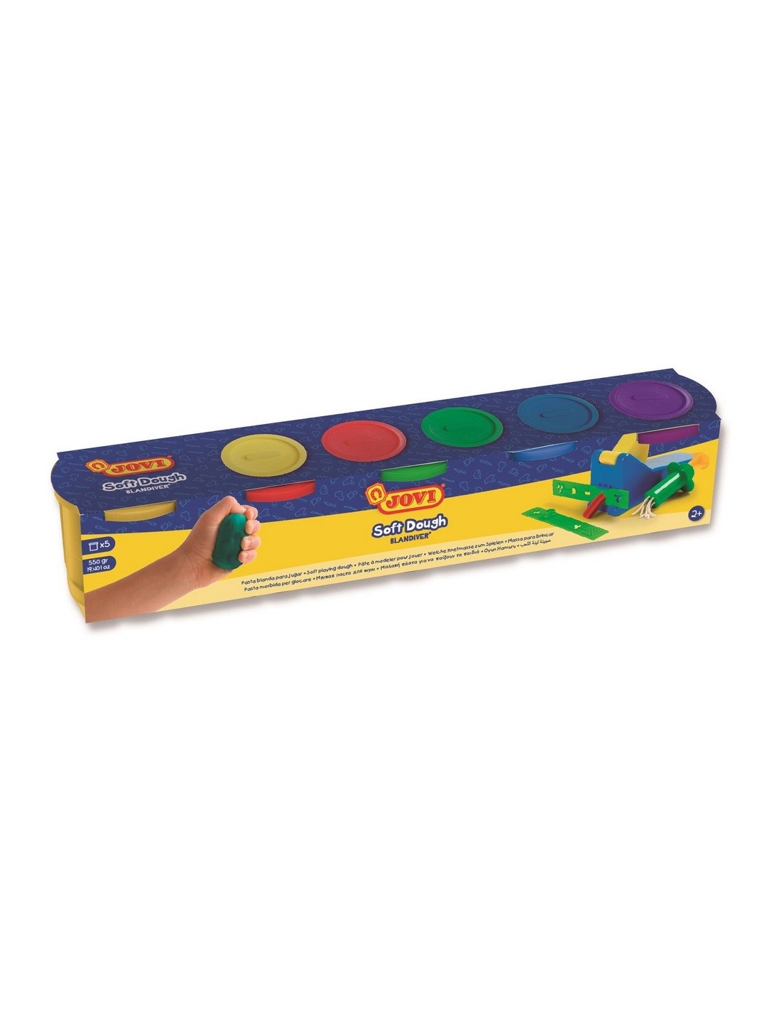 Al costat de la reconeguda marca Jovi, especialista en material per a manualitats, et portem Soft Dough, un pack de 5 pots de pasta de modelar de colors assortits de 110 grams. Aquesta pasta per modelar de colors és molt tova i es modela amb una enorme facilitat, facilitant la tasca als nens i nenes. A més, està pensada per ser la primera pasta per modelar dels menuts, sent totalment innòcua. A l'estar elaborada a base d'aigua, té una textura molt fresca i agradable a el tacte. També podreu crear nous colors barrejant els que ja teniu! I per descomptat, podreu fer servir motlles, rodets, modeladors i aparells de premsa o extrusores si voleu donar-los més forma. ¡Divertidíssim!
