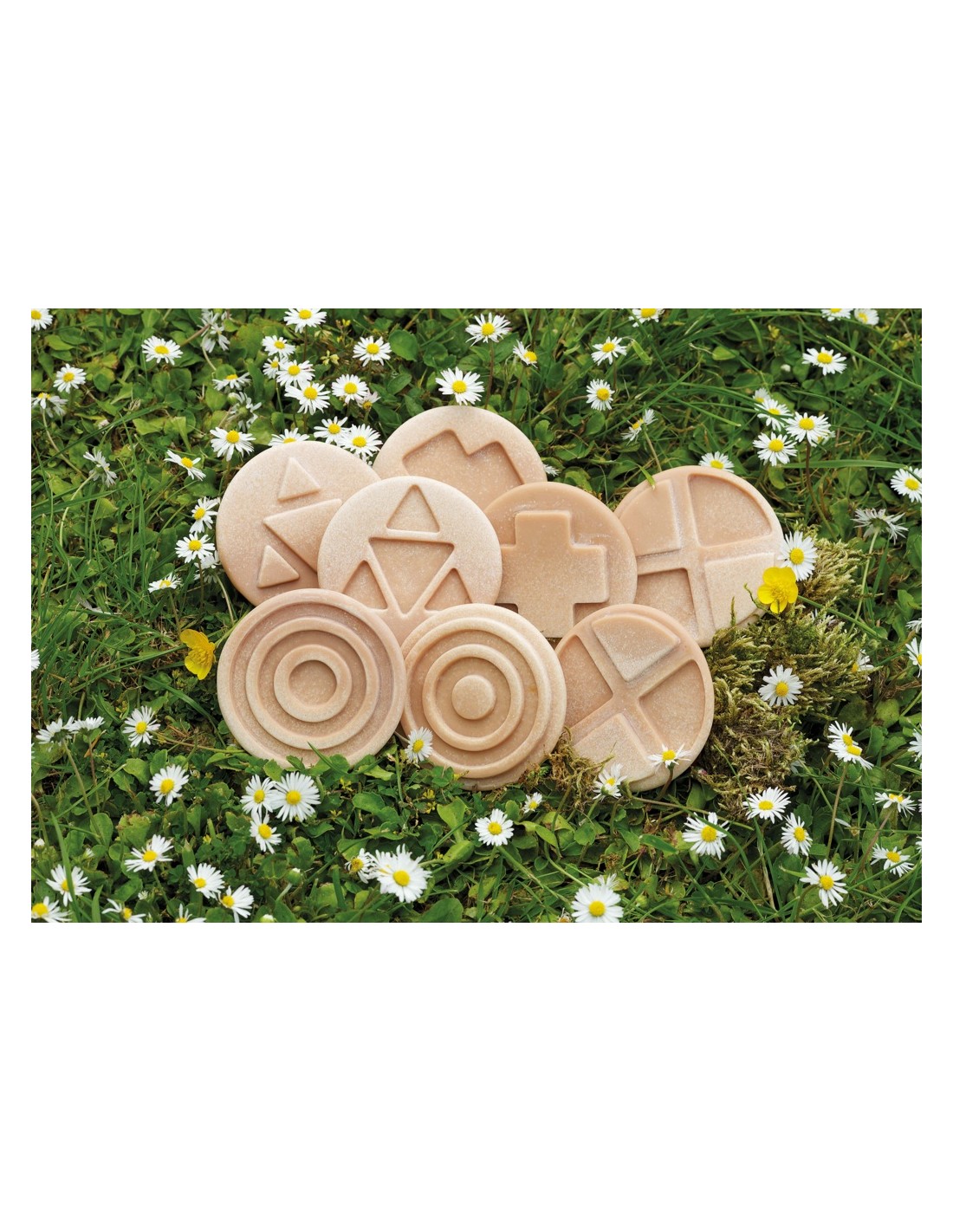 Aquest lot inclou quatre parells de pedres encaixables, cadascuna amb un disseny distint, la qual cosa ofereix múltiples possibilitats de joc i experimentació. La seva textura suau i formes ergonòmiques les fan perfectes per a mans petites, ajudant a millorar la coordinació ull-mà i la motricitat fina.