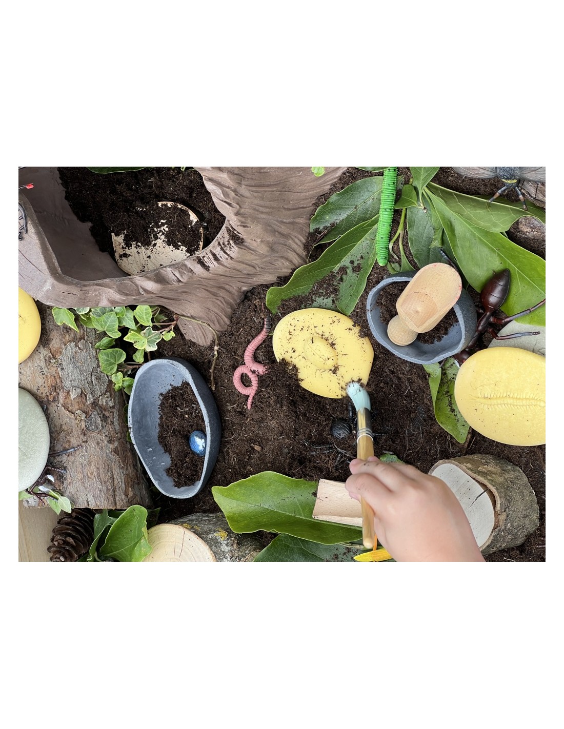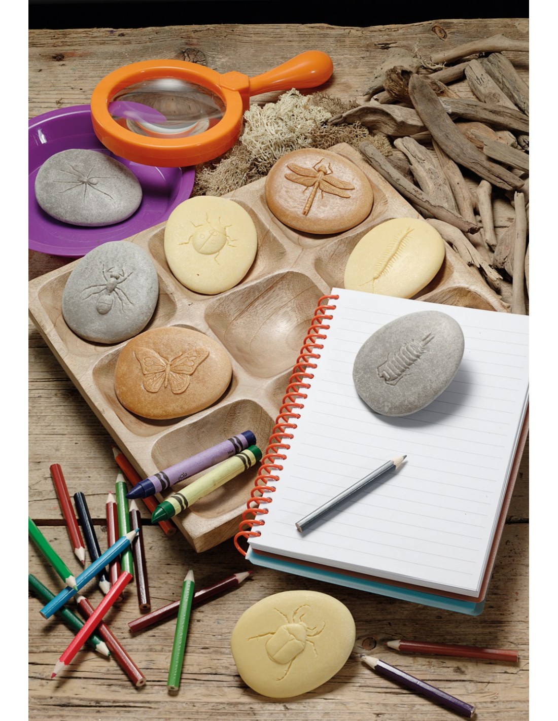 Amb aquestes pedres, els petits poden realitzar recerques sobre els insectes, crear fregaments de les peces en paper o fer impressions de les seves formes en argila. Aquest procés no sols els ajuda a comprendre millor el món natural que els envolta, sinó que també fomenta la seva creativitat i habilitats de resolució de problemes. A més, poden utilitzar-les per a fer cases d'insectes o petits ecosistemes, promovent el joc simbòlic i la imaginació.