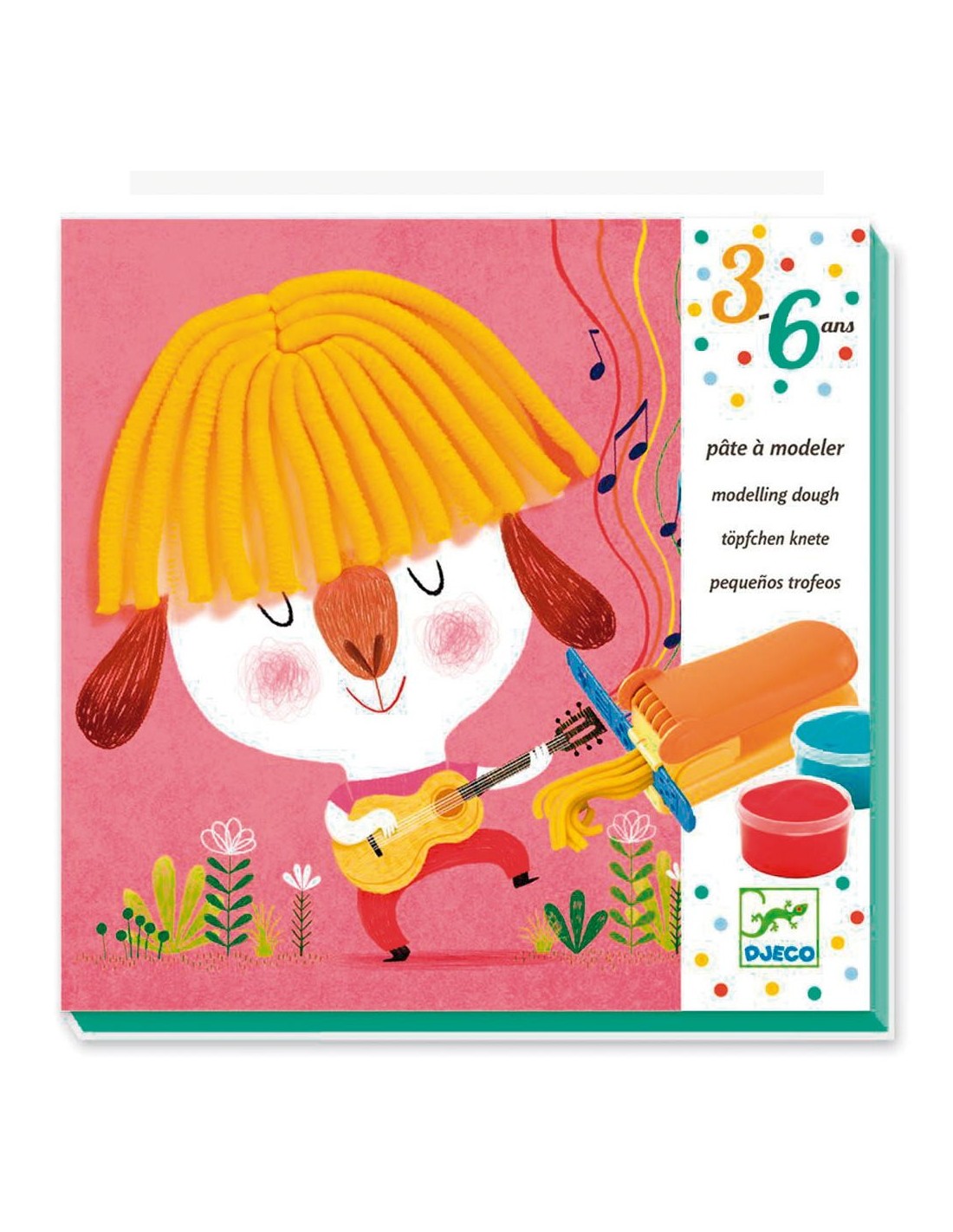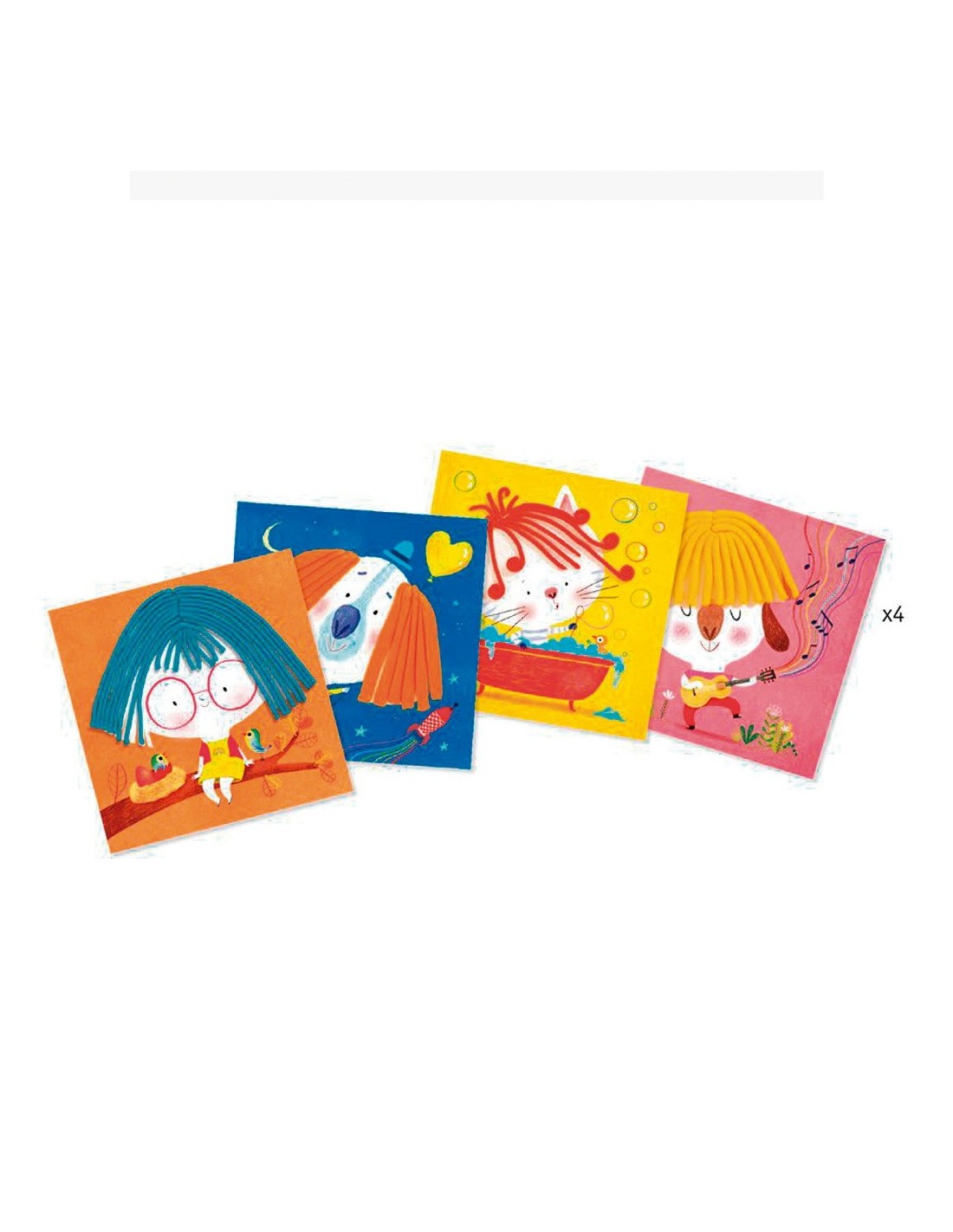 La manualitat de Djeco "Pentinats amb plastilina" ens permet crear divertits pentinats a 4 personatges il·lustrats cadascun en una targeta. Les targetes són reutilitzables i podrem fer tants pentinats com vulguem. Amb l'ajuda de la màquina especial de textures per al cabell que inclou la caixa podrem decidir si volem que sigui llis o arrissat i, un cop establert el llarg, només haurem de tallar amb la roda de tall.