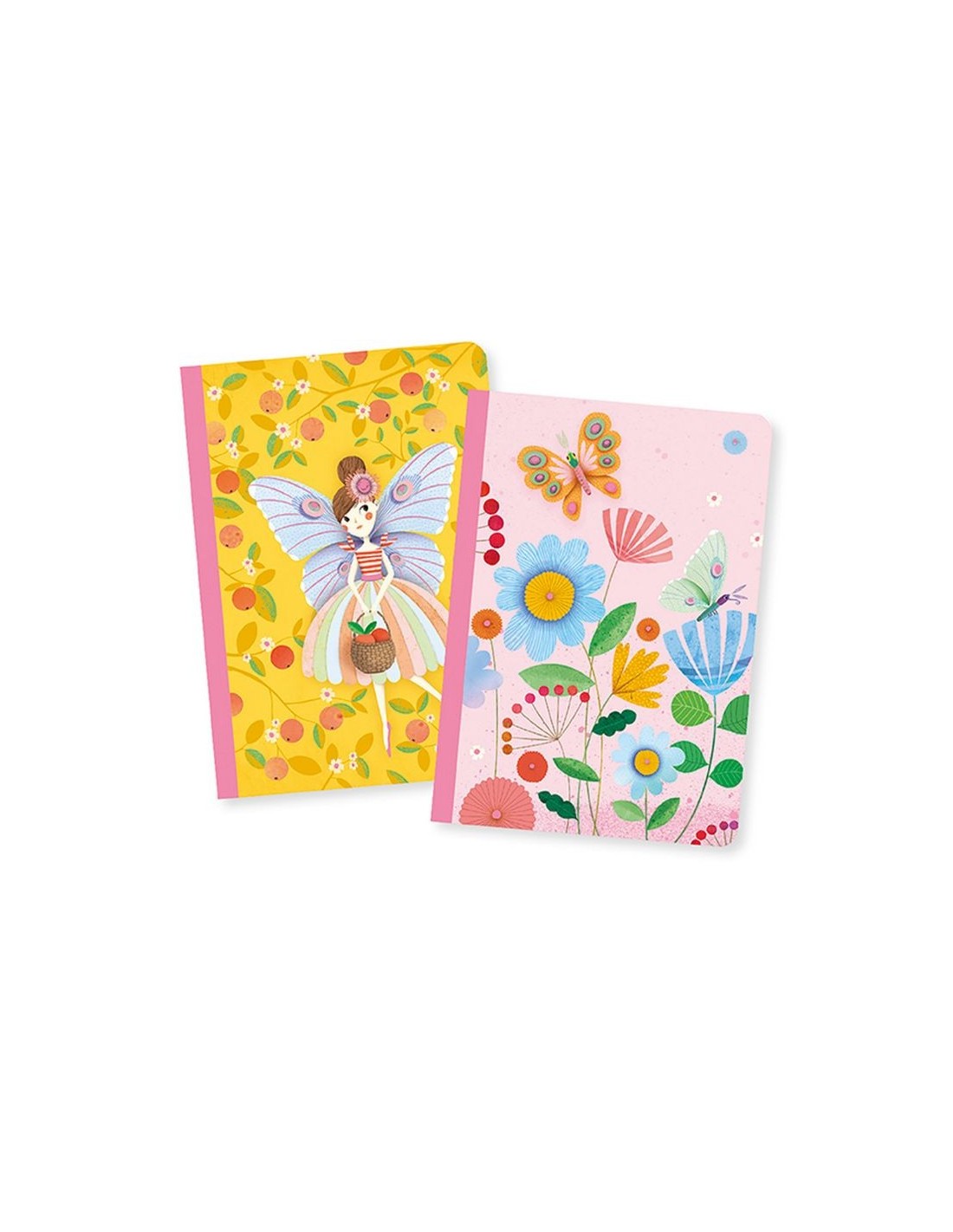 On estan aquests petits escriptors? I els petits dibuixants? Mireu el que us portem! De la mà de la marca francesa Djeco us presentem aquests Petits Quaderns Rose, un pack de dos quaderns de 40 pàgines, un d'ells amb les pàgines llises i l'altre a línies. Aquests Petits Quaderns Rose representen dues il·lustracions d'allò més adorables: en una llibreta apareix una preciosa fada al voltant d'arbres fruiters, mentre que en l'altra les papallones voletegen al voltant de les precioses flors de primavera.