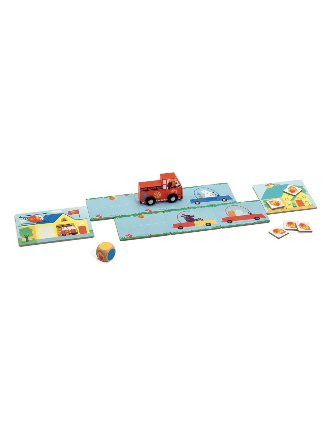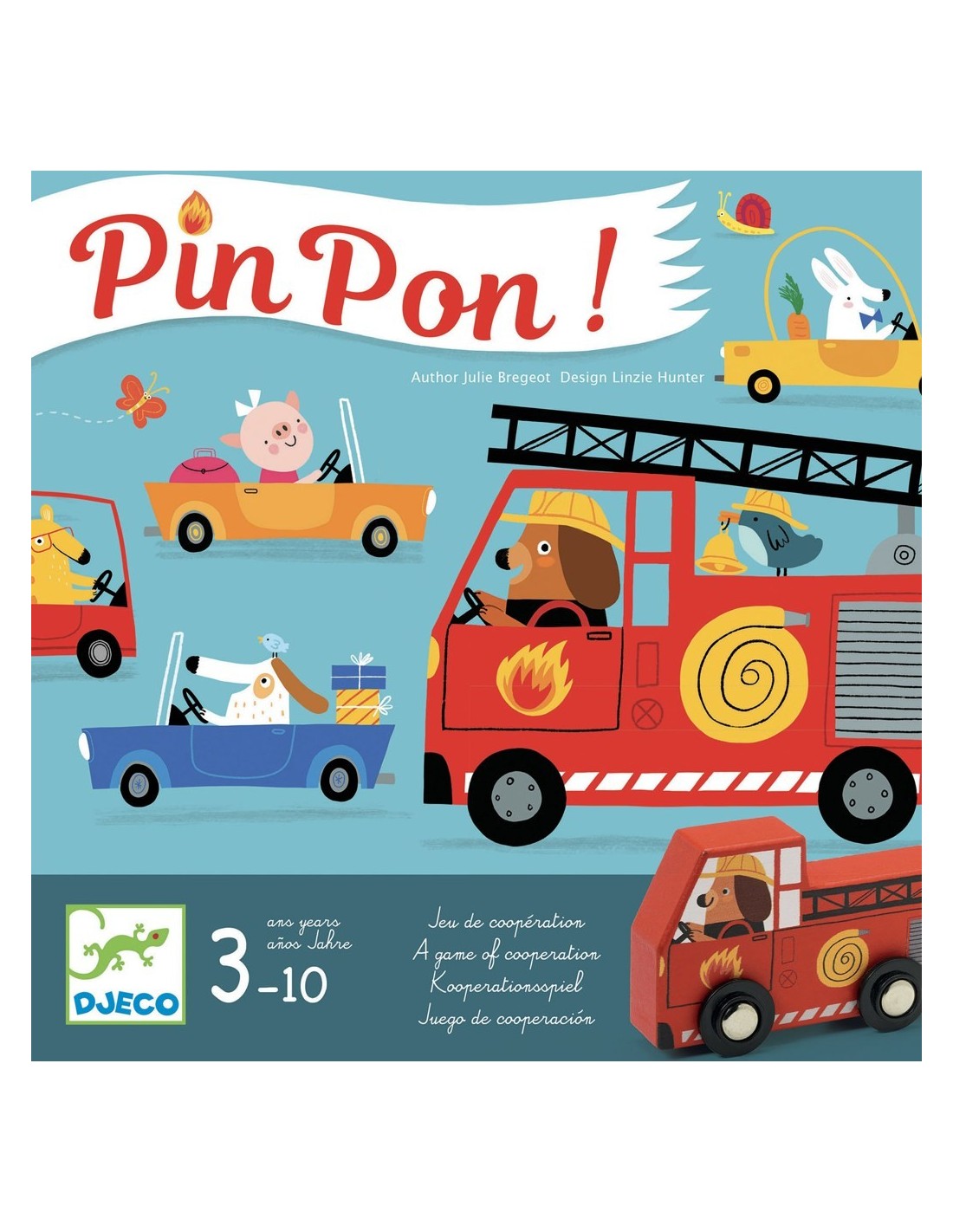 Et presentem el Pin Pon joc de taula de Djeco, una emocionant i cooperativa experiència de joc que encantarà als nens i fomentarà el treball en equip. En aquest joc, de 2 a 4 jugadors s'uneixen per a ajudar un camió de bombers a arribar a temps i apagar un incendi que amenaça amb consumir una casa.